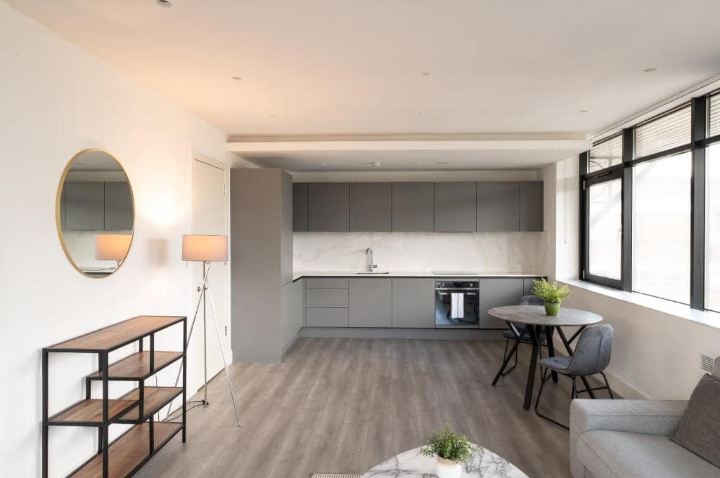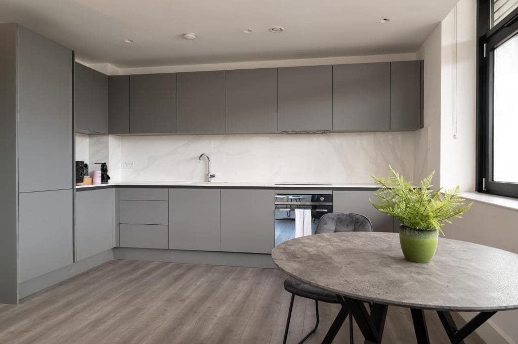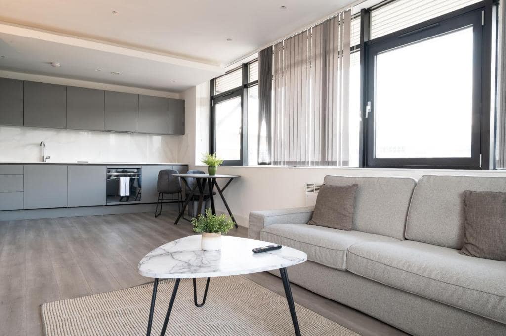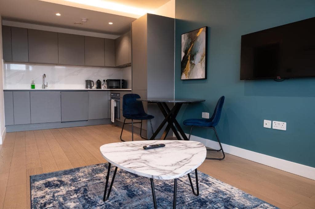 Inside, the apartment is designed to feel like a true home away from home. A fully equipped kitchen allows guests to cook, dine, and live at their own pace, while a spacious living area offers space to relax or work remotely. The interiors are clean-lined and contemporary, with thoughtful touches that prioritise comfort — from fast Wi-Fi and smart TVs to blackout curtains and high-quality bedding. Whether you’re staying for a few nights or a few weeks, the generous layout and practical amenities make it easy to settle in and focus on what matters. Hounslow Serviced Apartments are especially well-suited to professionals in transit, consultants on assignment, or families in need of flexible, short-term accommodation.
