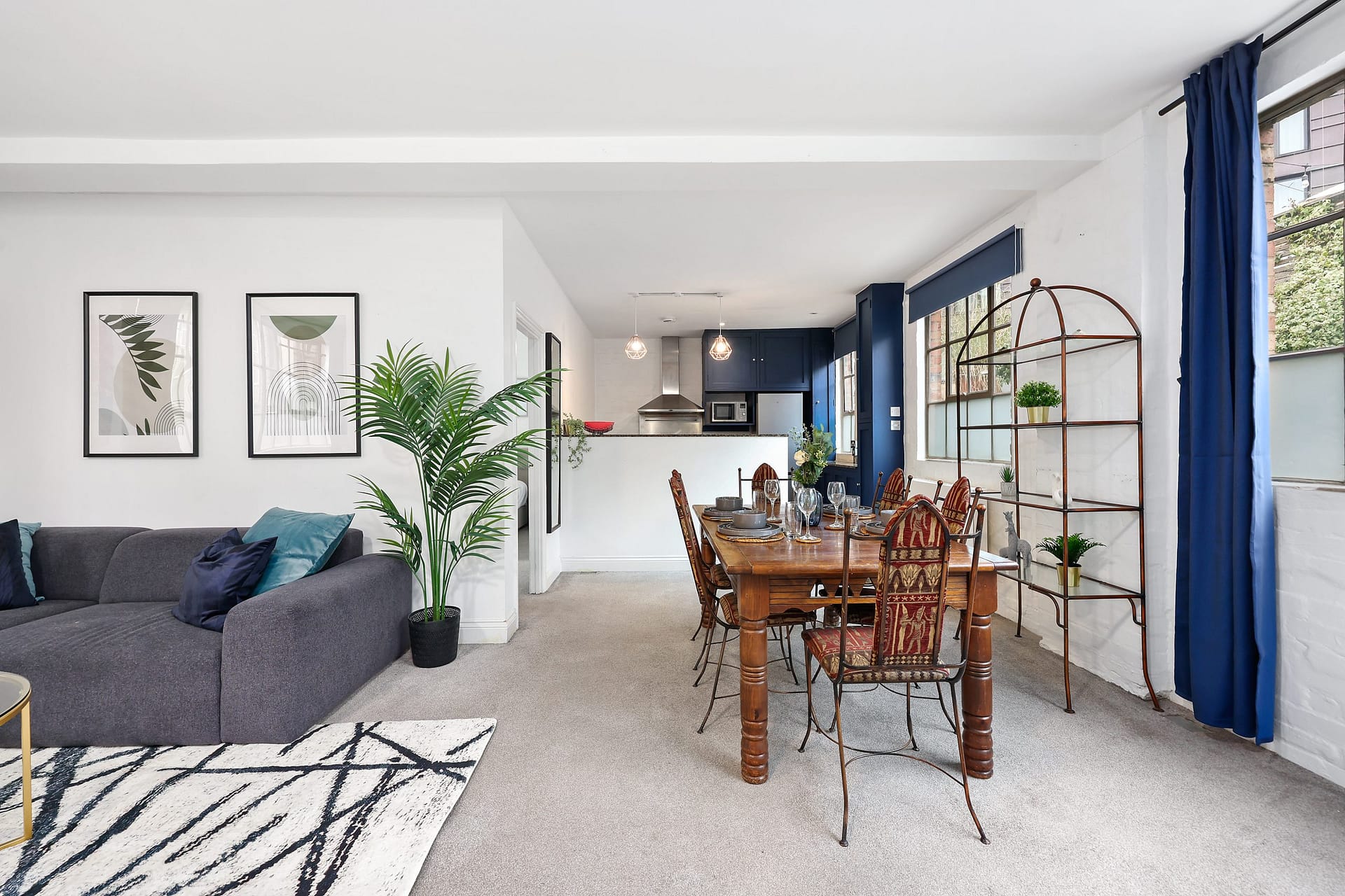 Welcome to Hoxton Fullwood’s Mews Apartments, charming apartments located in a quiet, gated mews in the heart of Hoxton. With secure coded entry, this home offers the perfect balance of privacy and city living, ideal for solo travellers, couples, or small groups. The apartment opens into a spacious, fully equipped kitchen with everything you need to cook at home, including pots, pans, utensils, oil, salt, pepper, and more. The kitchen connects to the bright and cosy lounge area, complete with a selection of books that guests are welcome to enjoy during their stay.