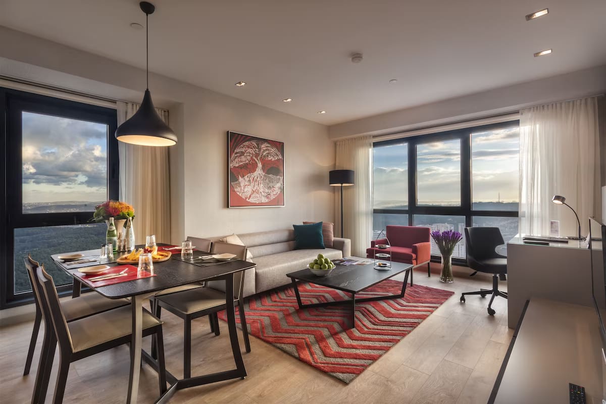 Istanbul Bomonti Incirli Aparthotel offers a refined stay in one of Istanbul’s most vibrant neighbourhoods. Located within the prestigious Anthill Residence, these stylish serviced apartments range from one to four bedrooms, each with panoramic views of the Bosphorus and historic skyline. Designed for both short and extended stays, the apartments include fully equipped kitchens, spacious living areas, and modern amenities such as high-speed Wi-Fi and in room laundry. Guests enjoy exceptional on-site facilities, including a fitness centre, spa, sauna, steam room, Turkish bath, and even an indoor ski slope. There’s also a restaurant serving international cuisine, a games room, playground, and ample secure parking.