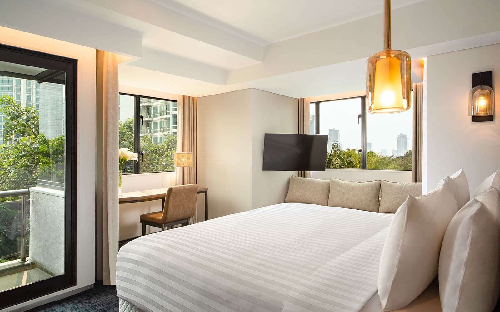 Facilities reinforce a live-work-unwind rhythm. A highlight is the infinity-style outdoor swimming pool, paired with areas to lounge and enjoy skyline views. There is also a fitness centre for quick workouts, plus wellness add-ons such as sauna and jacuzzi-style relaxation for decompression after Jakarta traffic. Greenery and outdoor corners add breathing room, and social-friendly features like barbecue facilities make longer stays feel more residential. For business needs, the property supports meetings with conference space and business services, while practical touches like a 24-hour front desk, concierge support, housekeeping, and on-site parking keep things smooth. Overall, Jakarta Sudirman Aparthotel is a strong choice if you want central access with apartment comfort and amenities that help you maintain your routine.