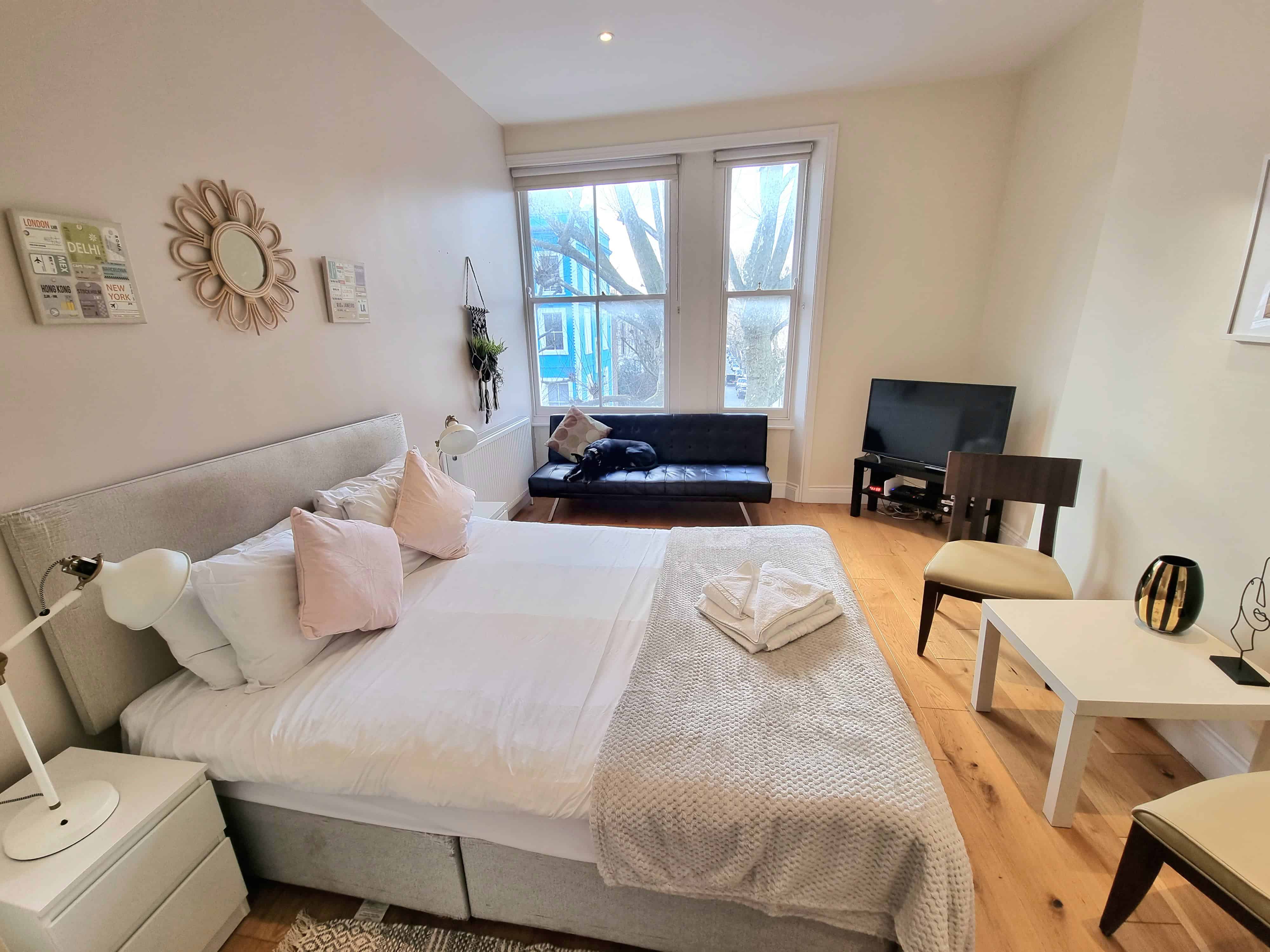Furthermore, Ladbroke Grove offers a lively, artistic community right at your doorstep. You’ll find Portobello Road Market nearby, filled with antiques, fresh produce, and gourmet street food. In addition, trendy cafés, boutique shops, playgrounds, and fitness centres are just steps away. Excellent transport links from Ladbroke Grove Station make commuting around London fast and easy. After a busy day exploring or working, you can return to your apartment to relax in the spacious living room or enjoy the calm of your private garden.