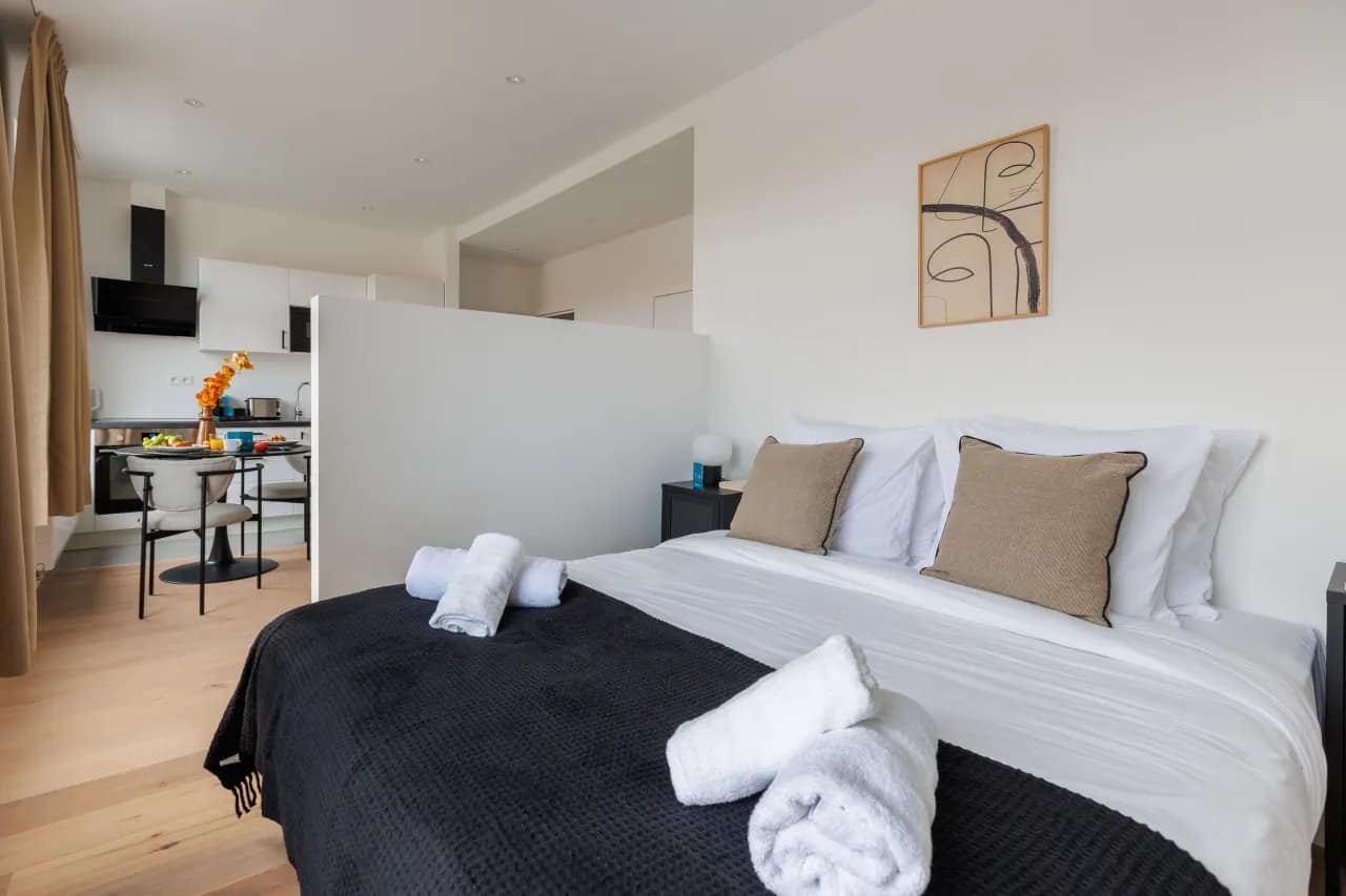 Perfectly positioned for business and city travel alike, the Lille Westfield Euralille Aparthotel offers the comfort of home with the convenience of a central location. Just a few minutes’ walk from both Lille-Europe and Lille-Flandres train stations, this modern aparthotel is a gateway to the wider Euroregion—putting Brussels, Paris, and London all within easy reach by high-speed rail. Whether you’re in Lille for a short client meeting or a longer business project, our fully serviced studios and apartments provide an ideal base with kitchen facilities, workspaces, and a range of hotel-style amenities to enhance your productivity and relaxation.