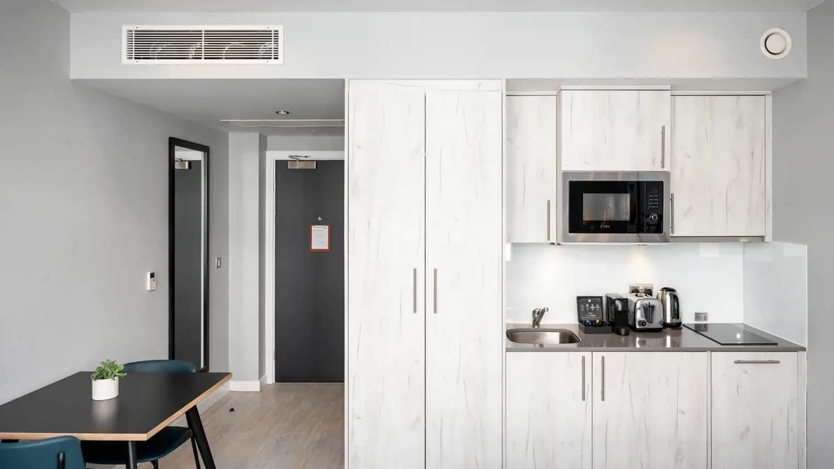 Beyond your private flat, Liverpool The Lexington Apartments building offers residents an impressive suite of shared amenities that elevate the stay. 24‑hour concierge service, on‑site gym, roof terraces with outdoor kitchen / BBQ facilities, co‑working spaces and flexible work‑from‑home areas cater to modern lifestyles. On level 17 you’ll find a sky‑lounge, private dining room, cinema and communal social spaces — ideal for relaxing, socialising or entertaining without stepping outside your building. The combination of high‑spec apartments, extensive amenities, and a prime waterfront location makes Liverpool The Lexington Apartments an excellent choice for travellers, professionals, couples, or friends who value comfort, convenience and style in Liverpool.
