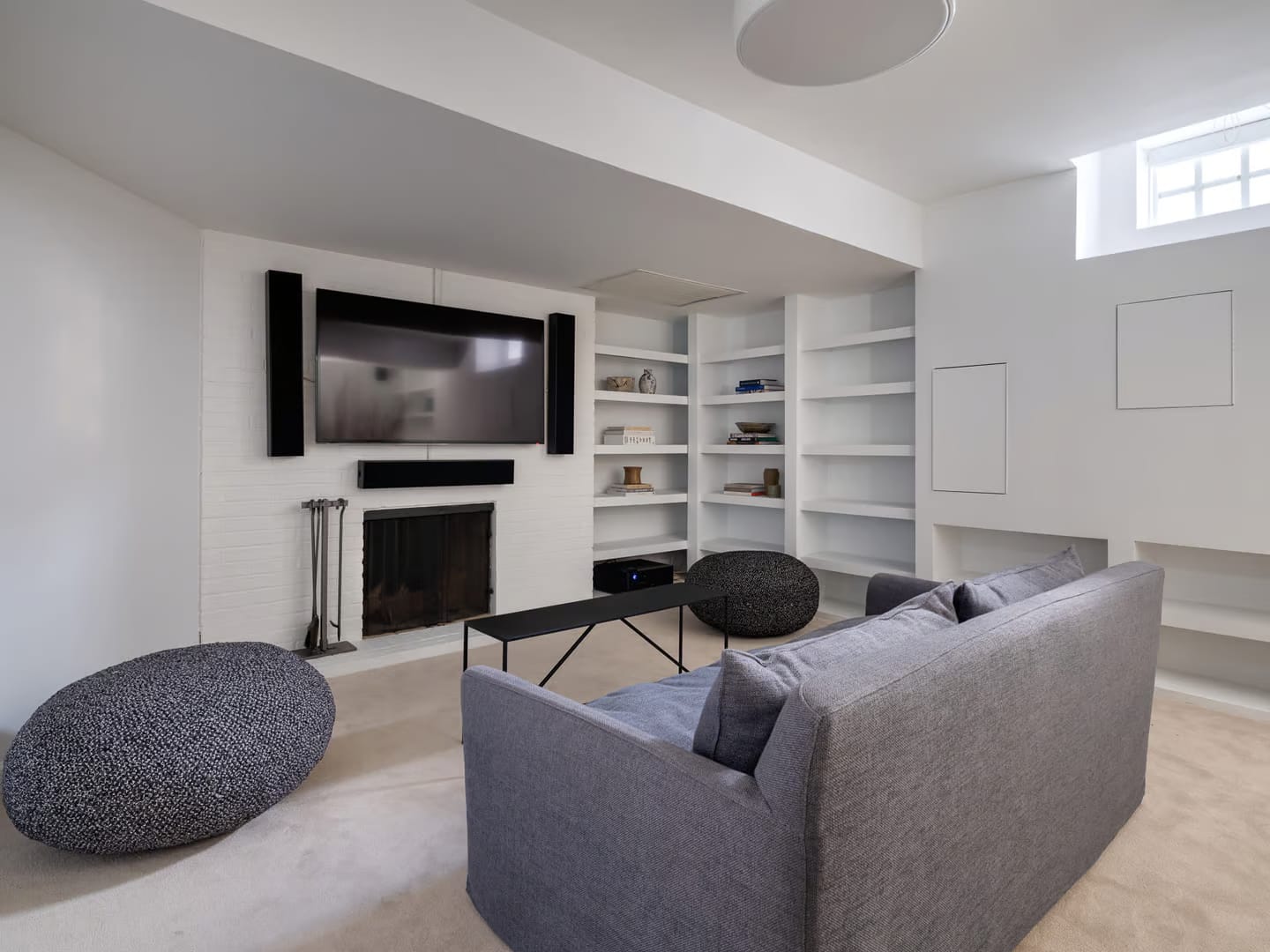 Inside, this four-bedroom, four-bathroom home blends heritage with high design. The gourmet kitchen, complete with chef-grade appliances and custom cabinetry, makes in-home dining feel like a private culinary event. A full floor is dedicated to the primary suite, featuring a loft-style bedroom, spa-like freestanding tub, and walk-in closet. Multiple lounges—including a media room—give guests ample space to unwind, while work-from-home guests will appreciate the dedicated office and additional workstations in select bedrooms. This Luxury Townhouse in Tribeca offers all the space and comfort of a multi-level home, something increasingly rare in Manhattan.