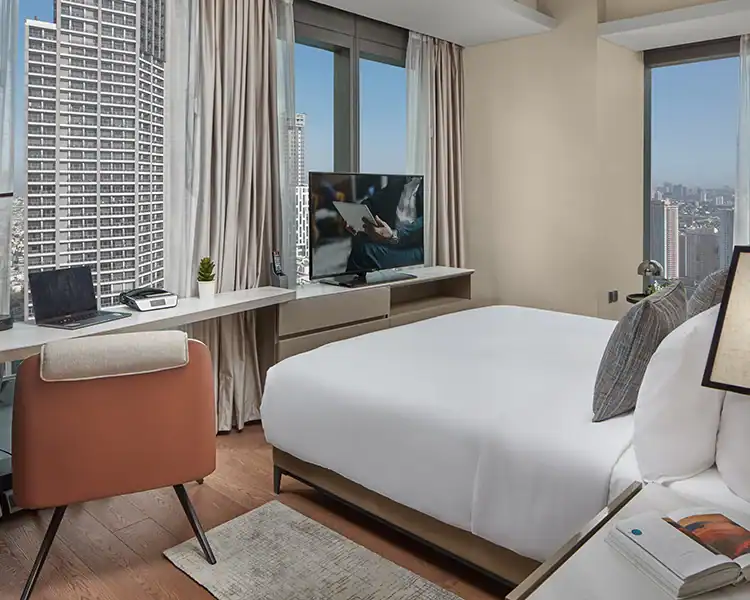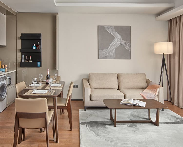 The aparthotel features a range of fully furnished serviced apartments designed to suit both short stays and extended residencies, with layouts that include studios as well as one-, two-, and three-bedroom options. Each apartment comes equipped with practical amenities such as high-speed Wi-Fi, air conditioning, fully equipped kitchens, and in-room laundry facilities, providing guests with the flexibility and independence of home-like living. Spacious living and dining areas offer inviting environments for relaxation, remote work, and everyday routines, while contemporary interiors and thoughtful design details help create a comfortable and welcoming atmosphere. These well-appointed apartments cater to a wide variety of traveller needs, from solo professionals to families and long-stay guests.