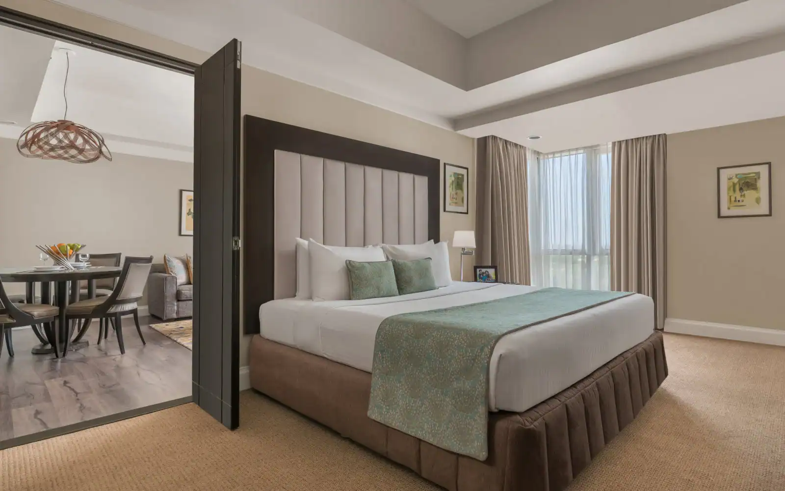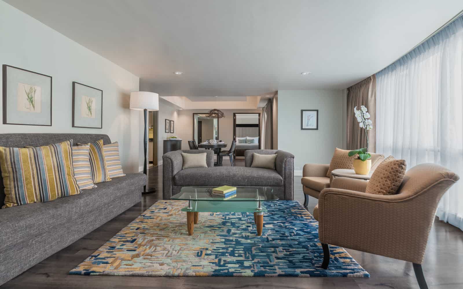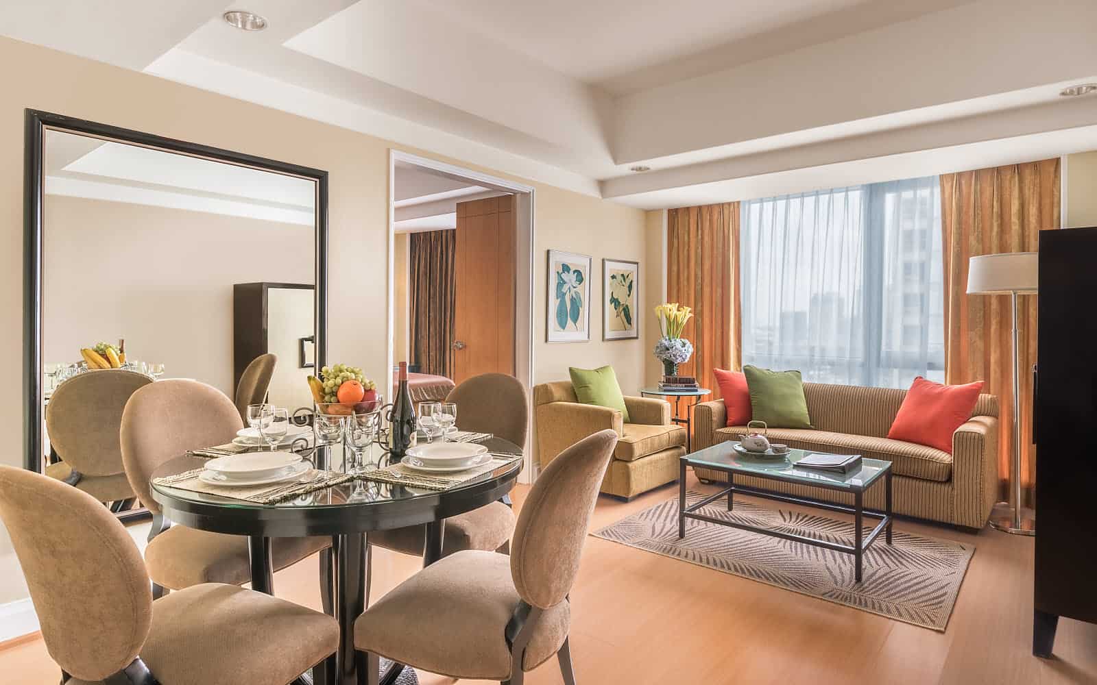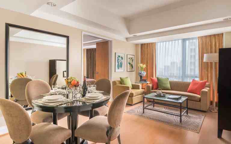 The aparthotel features a variety of fully furnished serviced apartments designed to support both short stays and extended residencies, with layouts that include studios as well as one- and two-bedroom units. Each apartment is equipped with practical amenities such as high-speed Wi-Fi, air conditioning, fully equipped kitchens, and in-room laundry facilities, providing guests with the flexibility and comfort of independent living. Spacious living and dining areas create inviting environments for relaxation, work, and everyday routines, while contemporary interiors and thoughtful design details help create a warm, home-like atmosphere that caters to a range of traveller needs. These well-appointed apartments are suitable for solo professionals, couples, families, and long-stay guests alike.