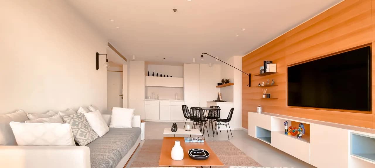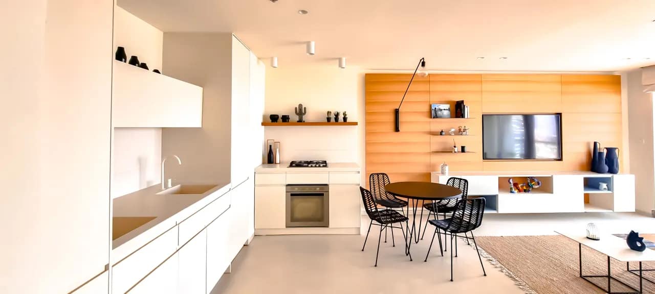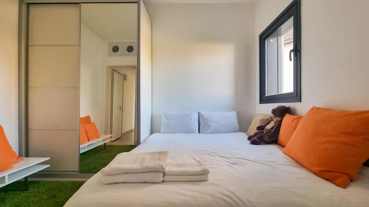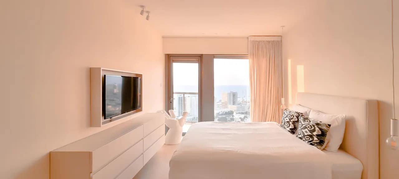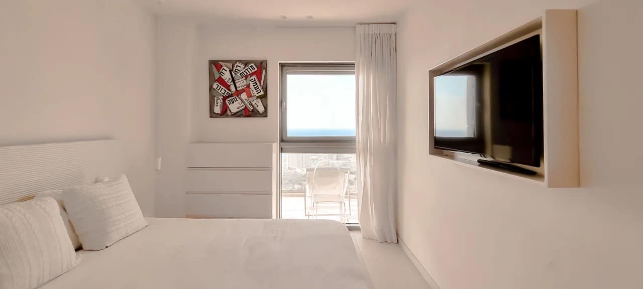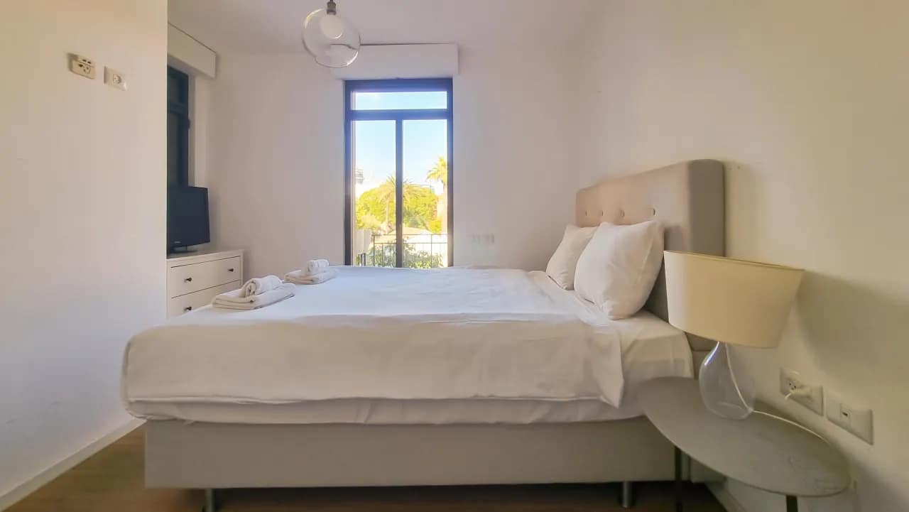 The Maon Street Apartments offer a stylish 70m² retreat in the heart of Tel Aviv, comfortably accommodating up to 4 guests. This newly renovated two-bedroom apartment features modern decor with a mix of neutral and bright colors, creating a soft and inviting ambiance. Floor-to-ceiling windows and wide mirrors amplify natural light throughout the space, while the cosy veranda and scenic views of Tel Aviv and its neighbouring streets provide a relaxing atmosphere. The apartment also includes a mamad (shelter room), ensuring safety and peace of mind, and comes fully equipped with modern appliances, kitchenware, and all essential toiletries.