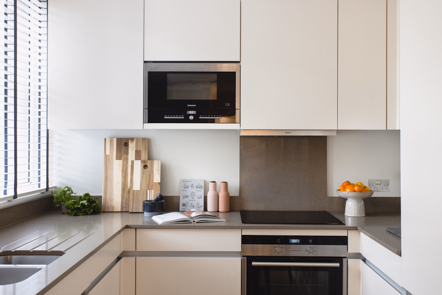 The interiors highlight elegant furnishings, soft neutral tones, and large windows that flood the spaces with natural light throughout the day. Fully equipped modern kitchens allow guests to prepare meals easily, whether for a quick breakfast, lunch, or a relaxed dinner at home. The inviting living and dining areas provide plenty of space to unwind after a busy day of meetings or sightseeing. Bedrooms are cozy and designed to promote restful sleep, featuring plush bedding and generous storage to keep everything organized. Bathrooms are sleek and contemporary, with high-quality fixtures, walk-in showers, and some offering luxurious freestanding bathtubs for added comfort.