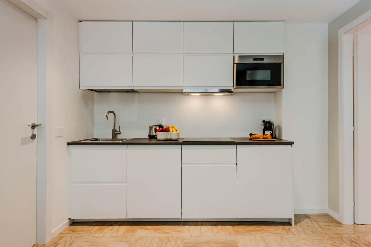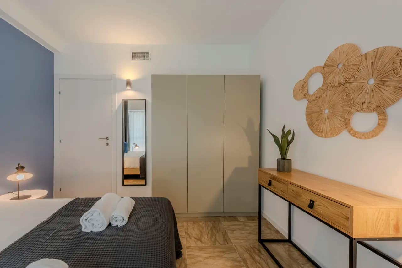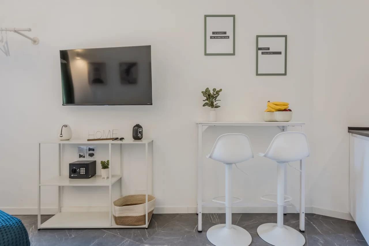 Each apartment is thoughtfully designed for both comfort and functionality, with layouts that include either one or two bedrooms and a modern bathroom. The interiors blend soft, neutral tones with sleek furnishings and natural materials to create a calm, sophisticated atmosphere. Open-plan living and dining spaces provide a welcoming setting for relaxation, while fully equipped kitchens include a refrigerator, oven, stovetop, microwave, dishwasher, coffee machine, and essential cookware—ideal for guests who enjoy preparing their own meals. Additional features such as high-speed WiFi, flat-screen TV, premium linens, and in-unit laundry facilities enhance the convenience of longer stays. The apartments also feature air-conditioning, comfortable bedding, and bright windows that fill the rooms with natural light. Designed to feel like a true home-away-from-home, these apartments cater equally well to solo travellers, couples, and small families.