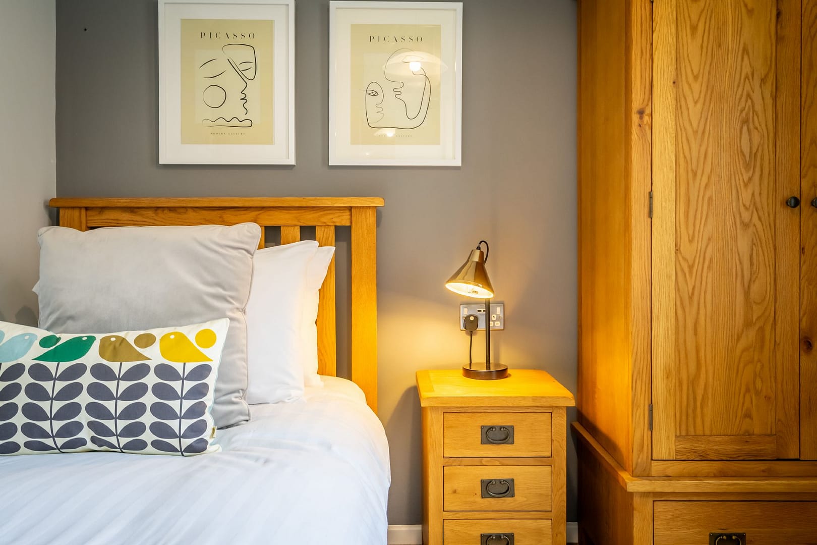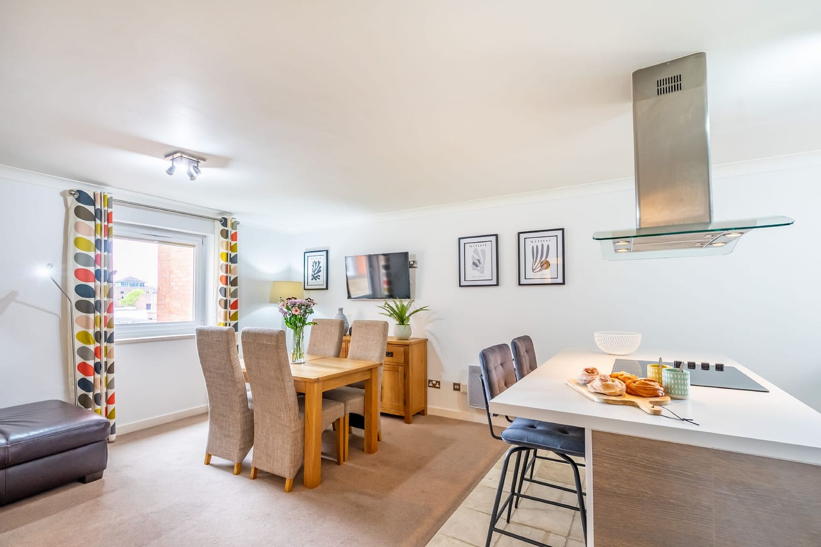 Spread across three floors, the apartment has been thoughtfully designed to combine comfort, practicality, and a homely atmosphere. The first floor is home to a bright and welcoming open-plan lounge, dining, and kitchen area. The lounge offers plush seating and a TV with Freeview for evenings in, while the dining space provides a sociable spot to enjoy meals together. The fully equipped kitchen includes an oven, electric hob, fridge freezer, dishwasher, washing machine, microwave, and all the little extras you might need, from a cafetiere to cutlery and crockery, making it easy to self. On the second floor, guests will find two comfortable and well-presented bedrooms. The main bedroom features a cosy double bed, while the second offers twin beds. The bathroom is modern and practical, with a bath and shower over, giving guests the option of a quick refresh or a long, relaxing soak.