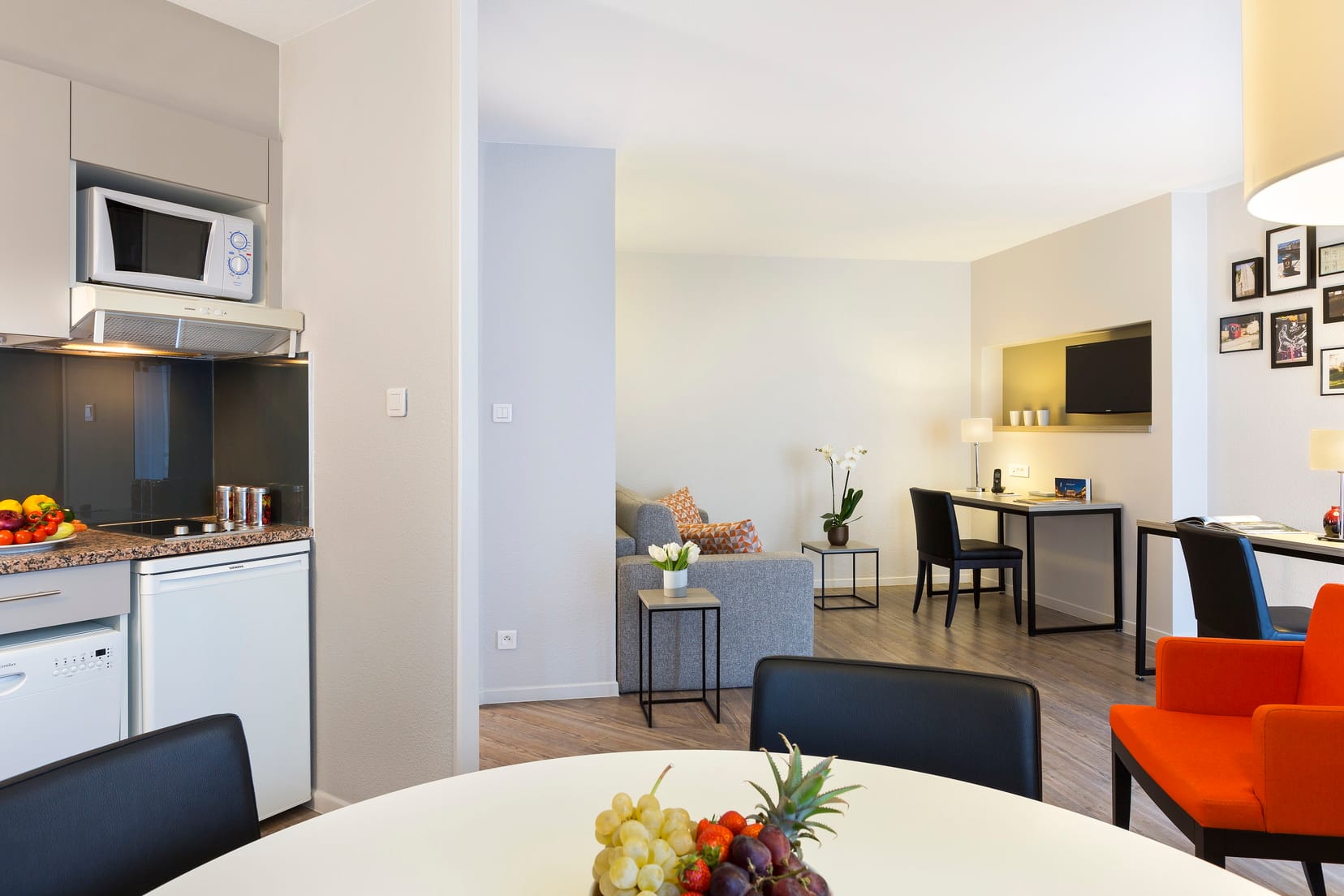 Designed with comfort and independence in mind, each of the aparthotel’s spacious studios and one-bedroom apartments comes fully furnished and equipped with everything you need to feel at home. Enjoy a well-equipped kitchen, comfortable living and dining areas, modern bathrooms, high-speed Wi-Fi, and ample storage—ideal whether you’re cooking for yourself, catching up on work, or simply unwinding after a day exploring the city. The combination of apartment-style convenience with hotel services such as 24-hour reception, laundry facilities, and optional housekeeping creates a seamless experience tailored to modern travellers. Business guests will appreciate the proximity to Montpellier’s key commercial hubs, while leisure visitors can explore nearby highlights like the Polygone shopping centre, the banks of the River Lez, or the charming backstreets of the old town.