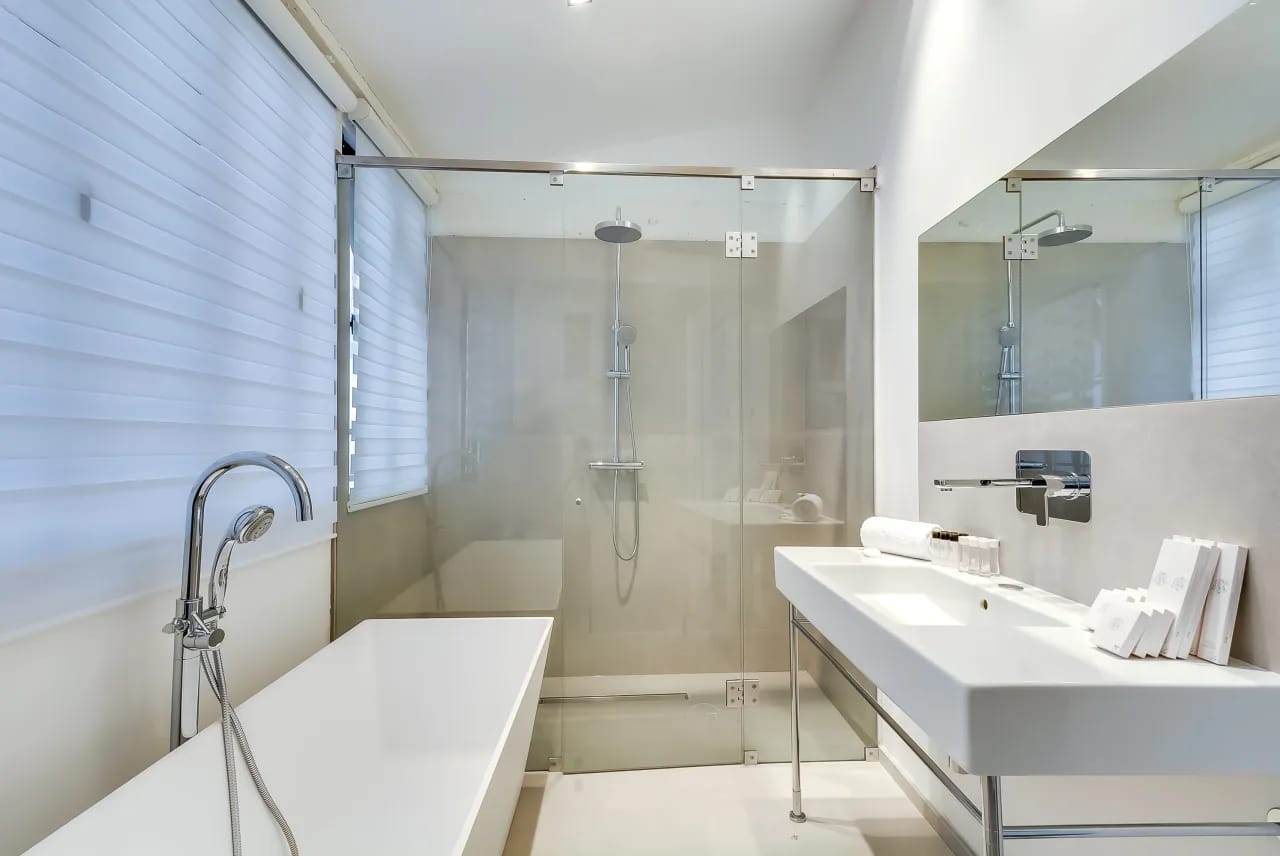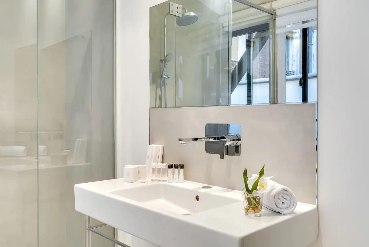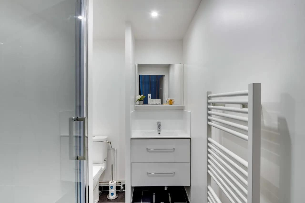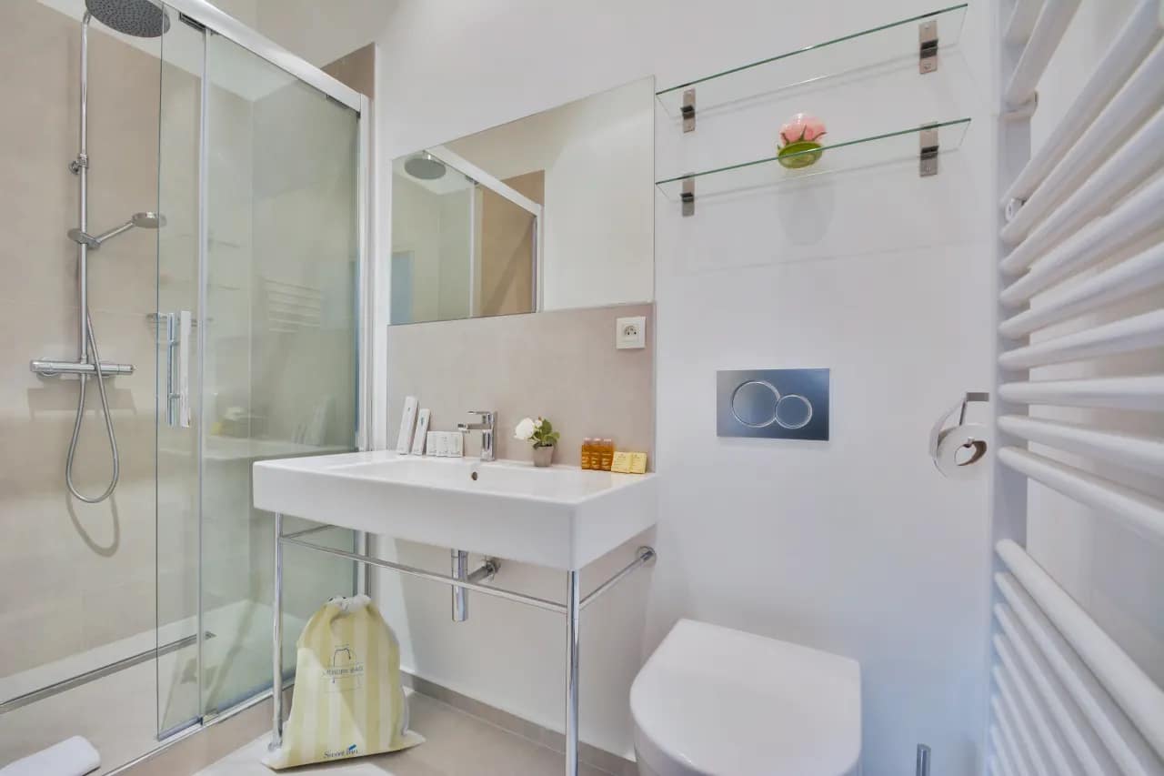 Inside, guests will find everything needed for a comfortable stay, from fully equipped kitchens with modern appliances to inviting dining areas perfect for shared meals. Premium amenities include free WiFi, cable TV, hotel-quality beds and linens, luxury toiletries, and a Nespresso machine. Thoughtful extras such as high-end bedding, rain showers, and stylish furnishings enhance the sense of home. Both apartments are equipped with heating, air conditioning, and smart locks for convenience, while practical touches such as a washing machine, safe, and luggage storage make longer stays effortless. Whether unwinding on the terrace or relaxing in the cosy living area, these apartments are designed to combine comfort with Parisian charm.