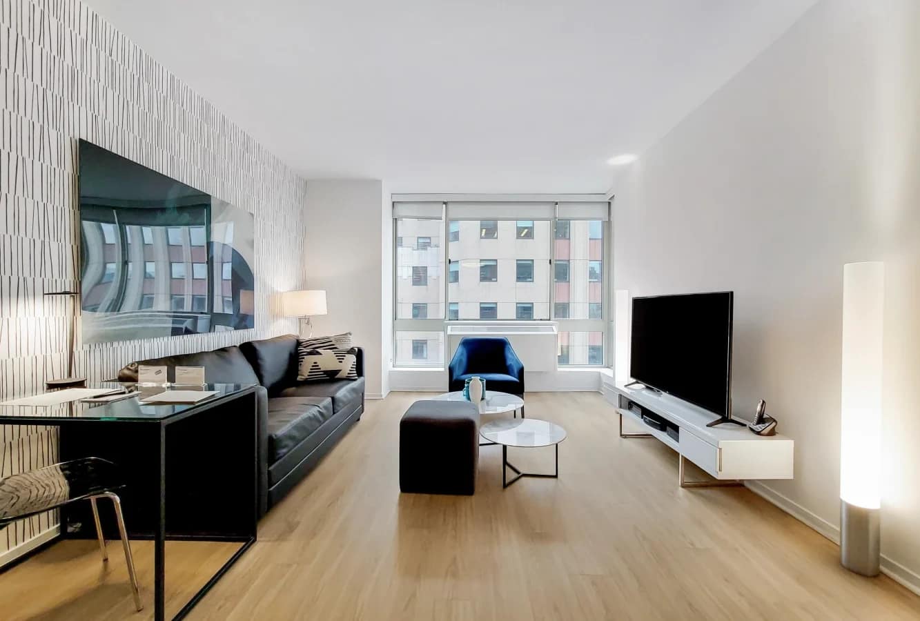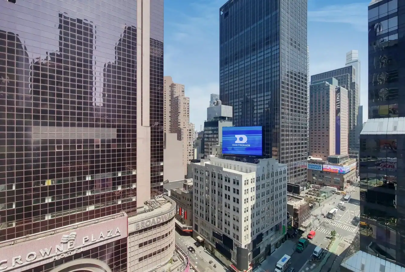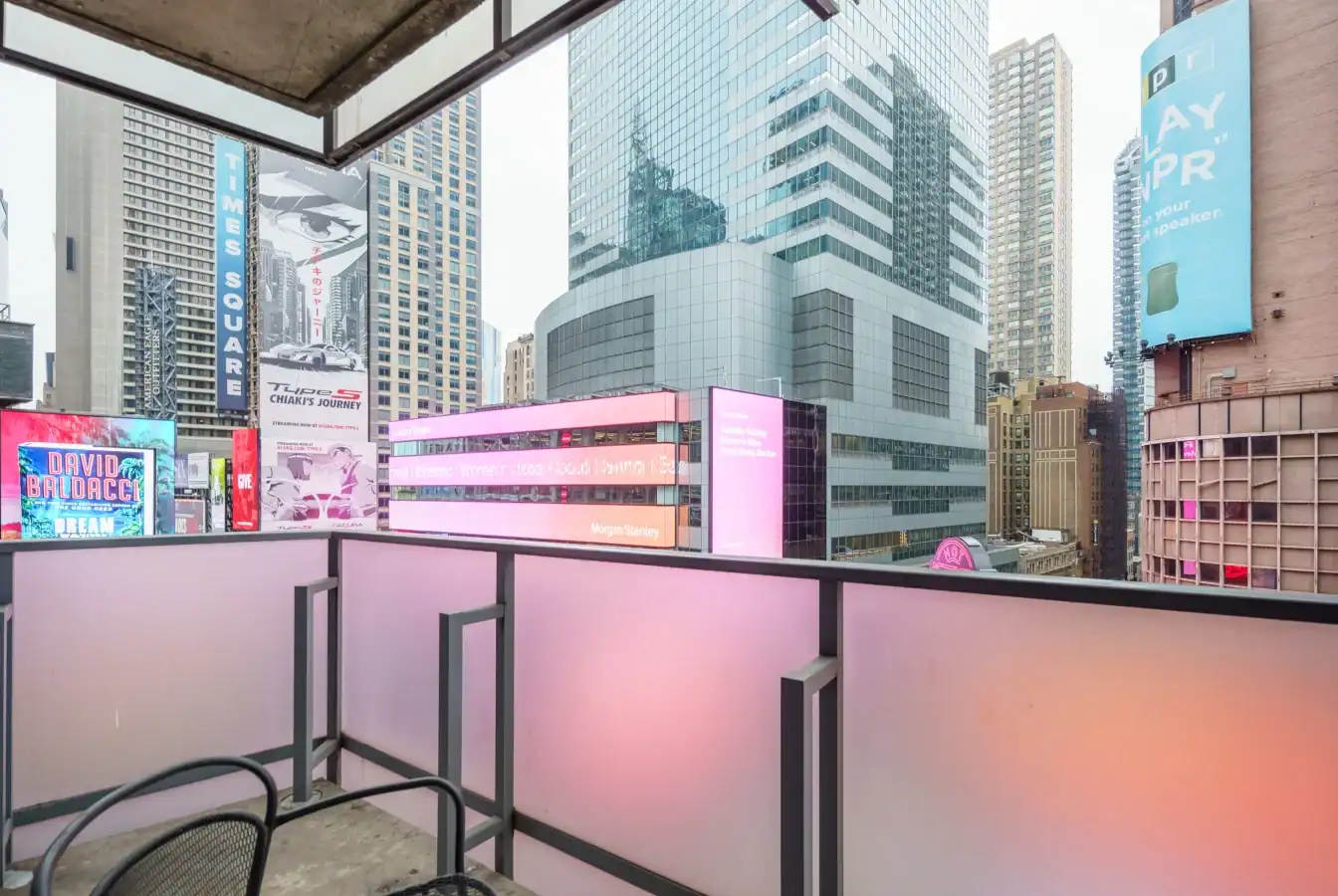 New York Broadway Apartments located in the electrifying core of Times Square, this stylish studio and one-bedroom apartment offers an elevated take on city living. High ceilings, expansive windows, and thoughtfully designed interiors create an airy and modern atmosphere. Hardwood floors, Sub-Zero and Bosch appliances, a fully equipped kitchen, and an in-unit washer/dryer add comfort and functionality to the space. Select units feature private balconies overlooking the energy of Midtown Manhattan, with some offering rare views of the iconic Times Square Ball Drop — a truly unique New York experience.