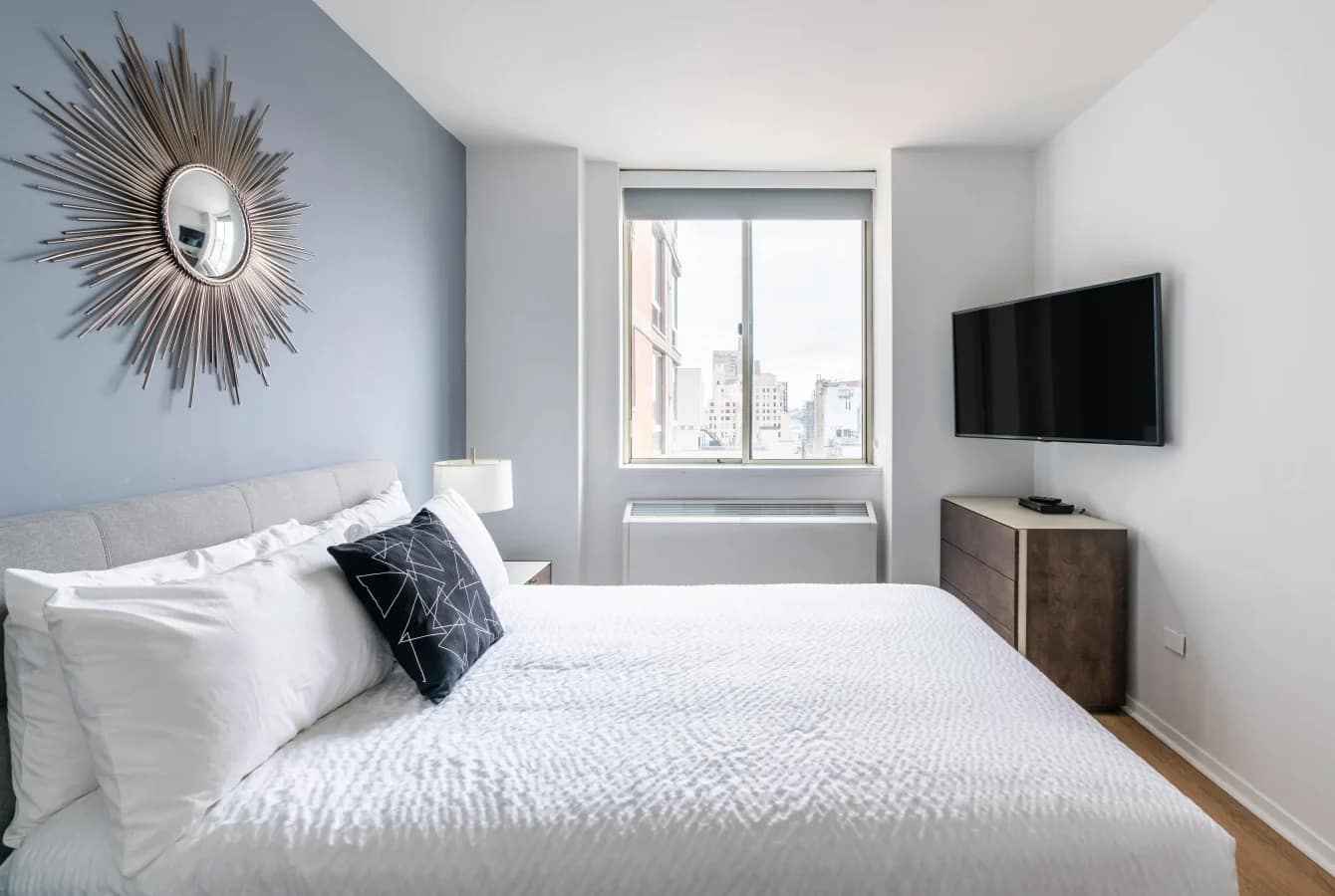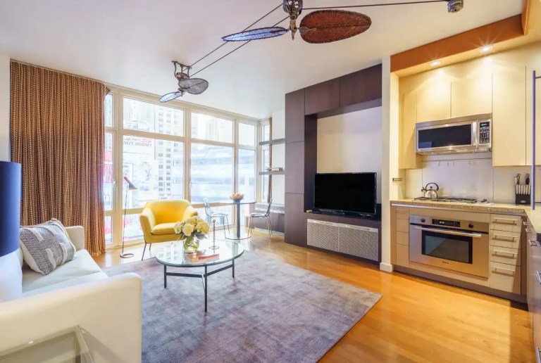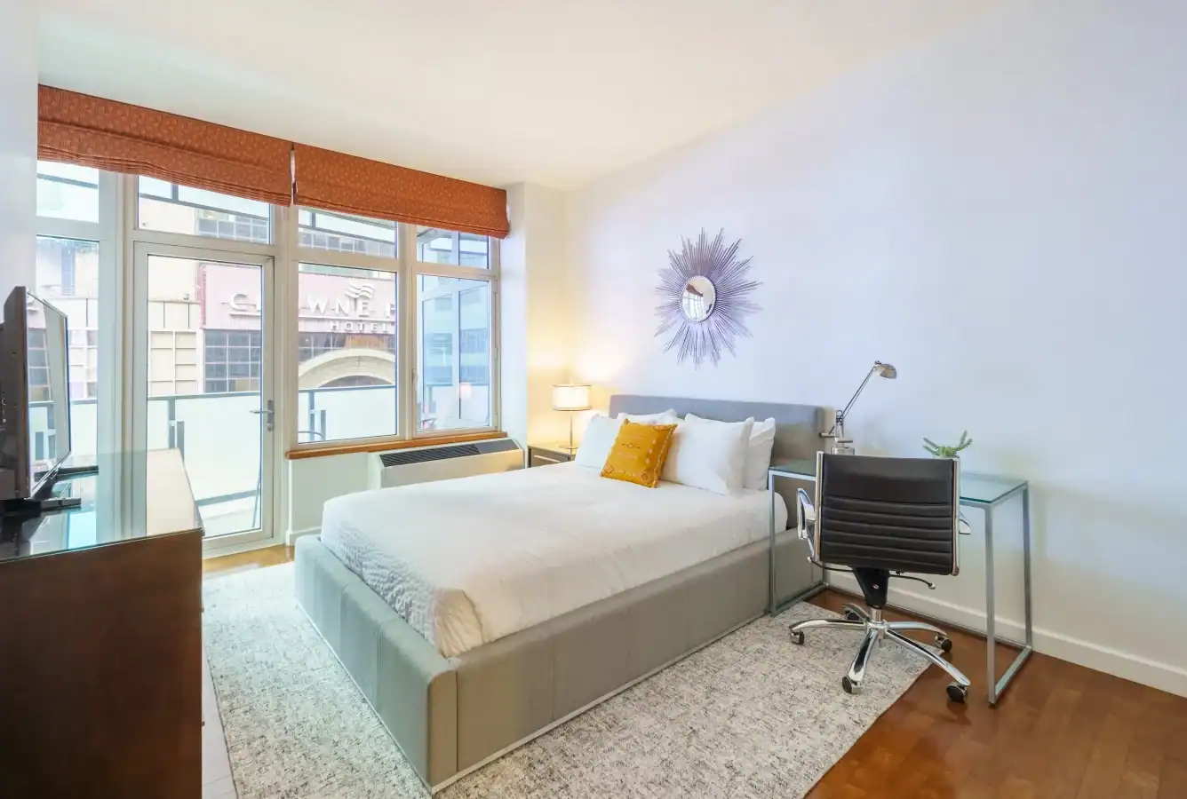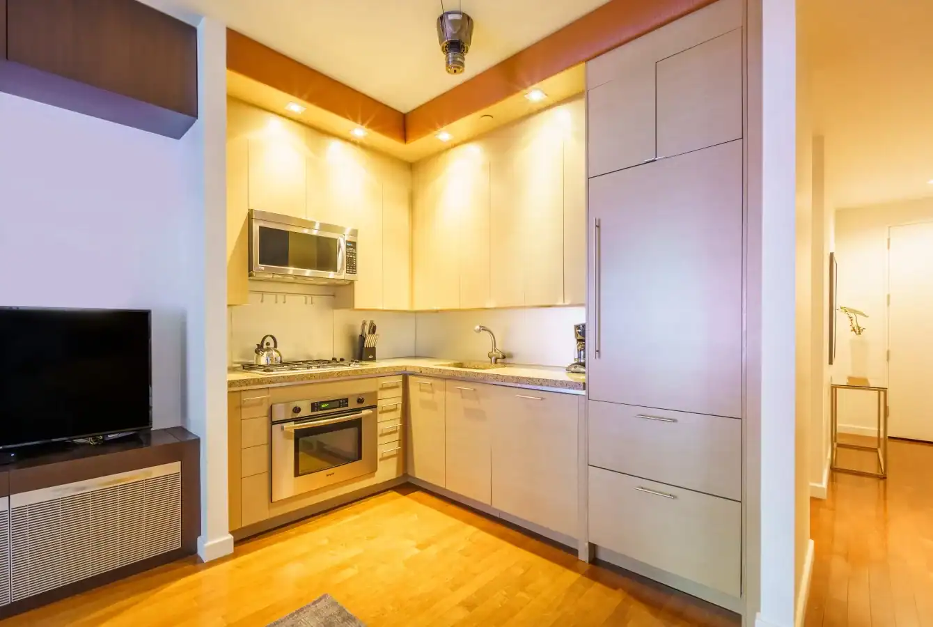New York Broadway Apartments located in the electrifying core of Times Square, this stylish studio and one-bedroom apartment offers an elevated take on city living. High ceilings, expansive windows, and thoughtfully designed interiors create an airy and modern atmosphere. Hardwood floors, Sub-Zero and Bosch appliances, a fully equipped kitchen, and an in-unit washer/dryer add comfort and functionality to the space. Select units feature private balconies overlooking the energy of Midtown Manhattan, with some offering rare views of the iconic Times Square Ball Drop — a truly unique New York experience.