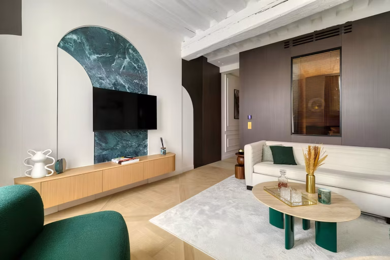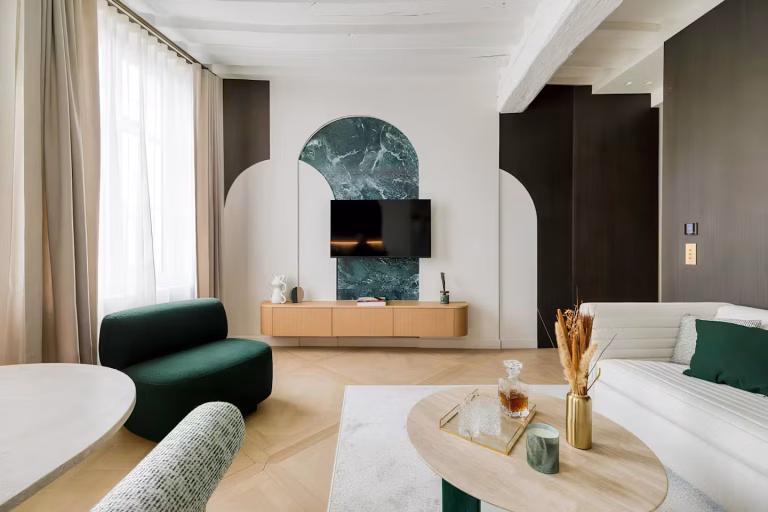 This Notre Dame luxury apartment is designed for couples or small groups looking to experience Paris from a calm and cultured base. With the Latin Quarter, Luxembourg Gardens, and countless riverside spots within easy reach, it’s a perfect retreat for those who want to immerse themselves in the city’s historic heart while enjoying high-spec living.