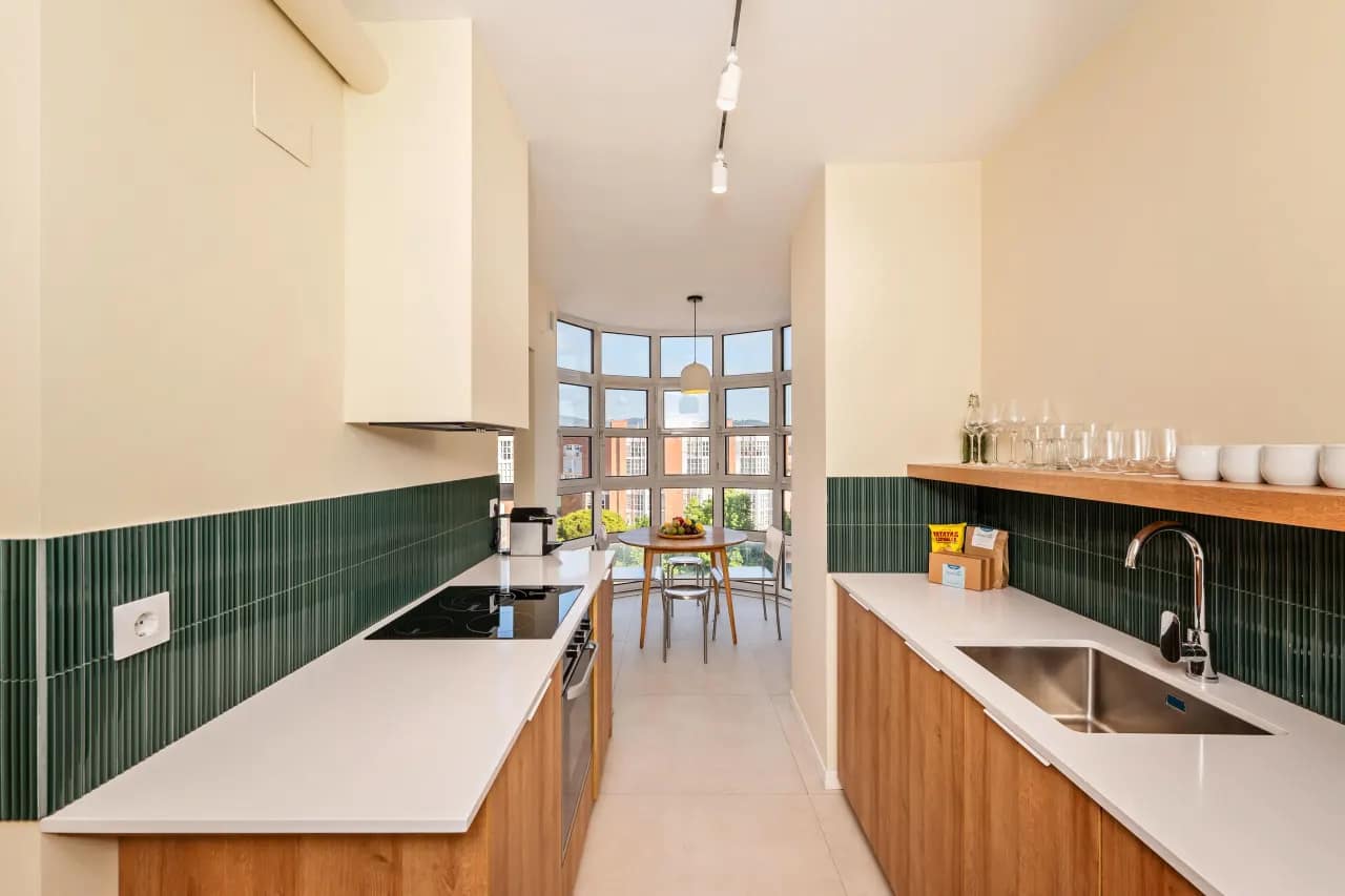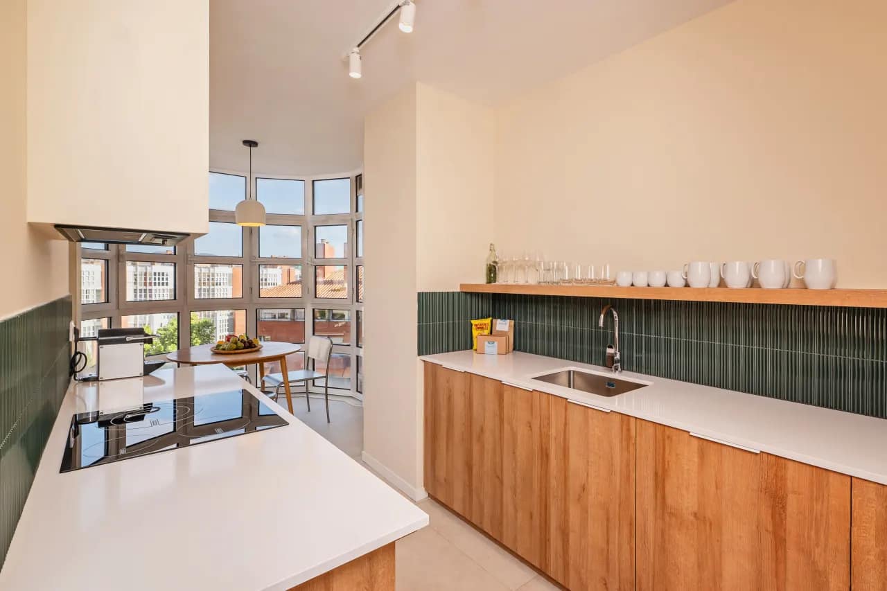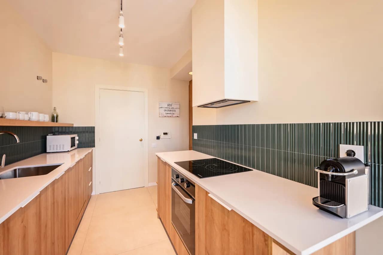 Discover the perfect blend of Barcelona’s vibrant urban energy and the serene beauty of the Mediterranean coast at Nova Icaria Beach Apartments. Ideally suited for up to eight guests, the Nova Icaria Beach apartment offers the comfort of home paired with the sophistication of a professionally designed space. Our local interior designer has created a bright and modern haven, complete with tasteful décor, clean lines, and a welcoming atmosphere. The open-plan living and dining area provides plenty of space for socializing, while large windows fill the rooms with natural light. A fully equipped kitchen—featuring a dishwasher, oven, microwave, and Nespresso machine—invites you to prepare fresh local dishes, whether it’s a quick breakfast before the beach or a leisurely dinner with friends and family.