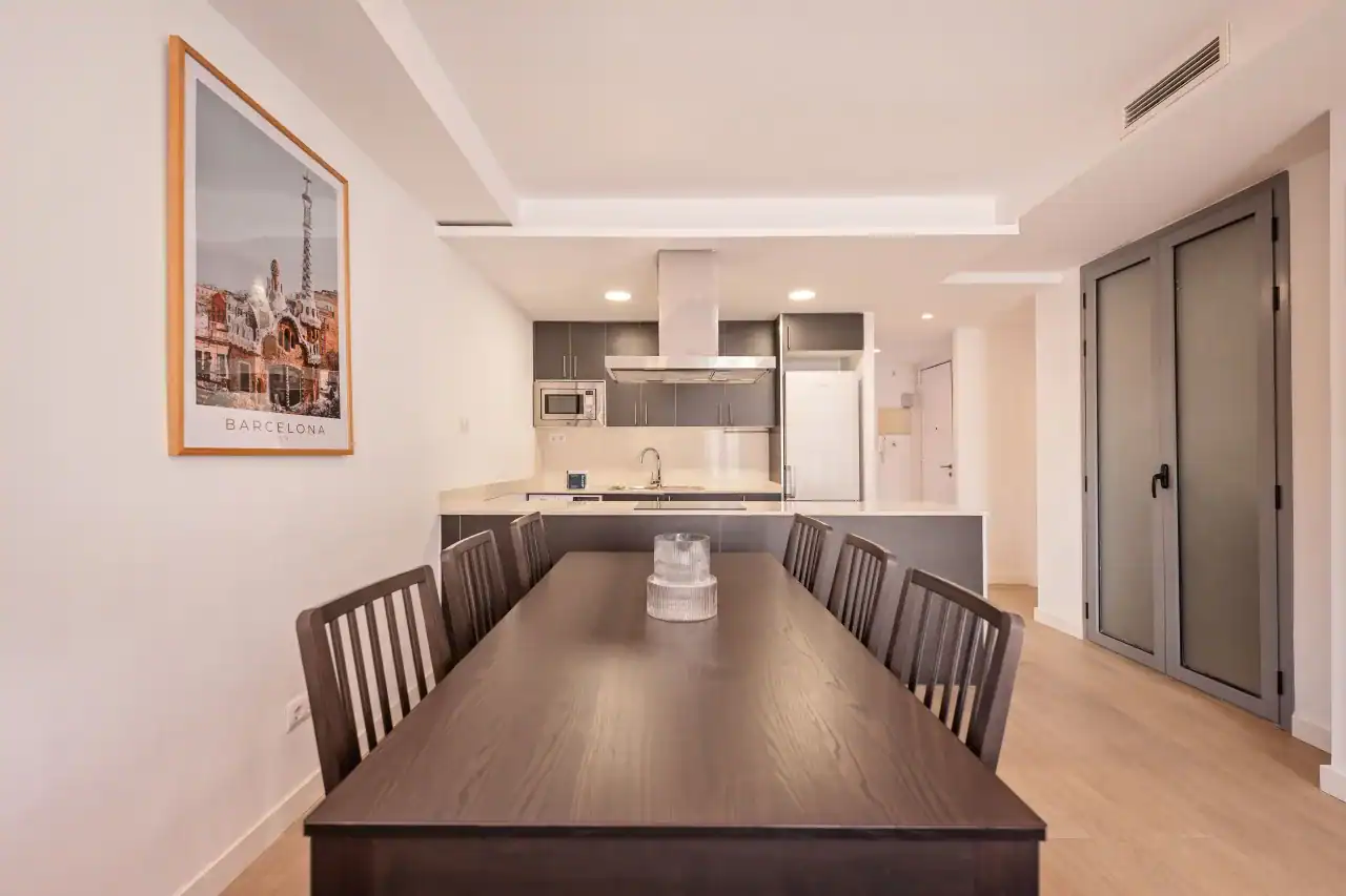 Located in the heart of Barcelona’s enchanting Old City, the Old City Palau Apartments offer a sophisticated and comfortable stay for up to six guests. This elegant three-bedroom, two-bathroom apartment blends contemporary style with a welcoming charm, thanks to its plush furnishings, coordinated colour palette, and thoughtfully designed interiors. Large windows fill the rooms with natural light, while the spacious living and dining areas provide the perfect space for relaxing with family or friends. The fully equipped kitchen allows you to prepare delicious meals at home, and premium touches like high-end toiletries, hotel-quality bedding, and a Nespresso machine add to the sense of luxury.
