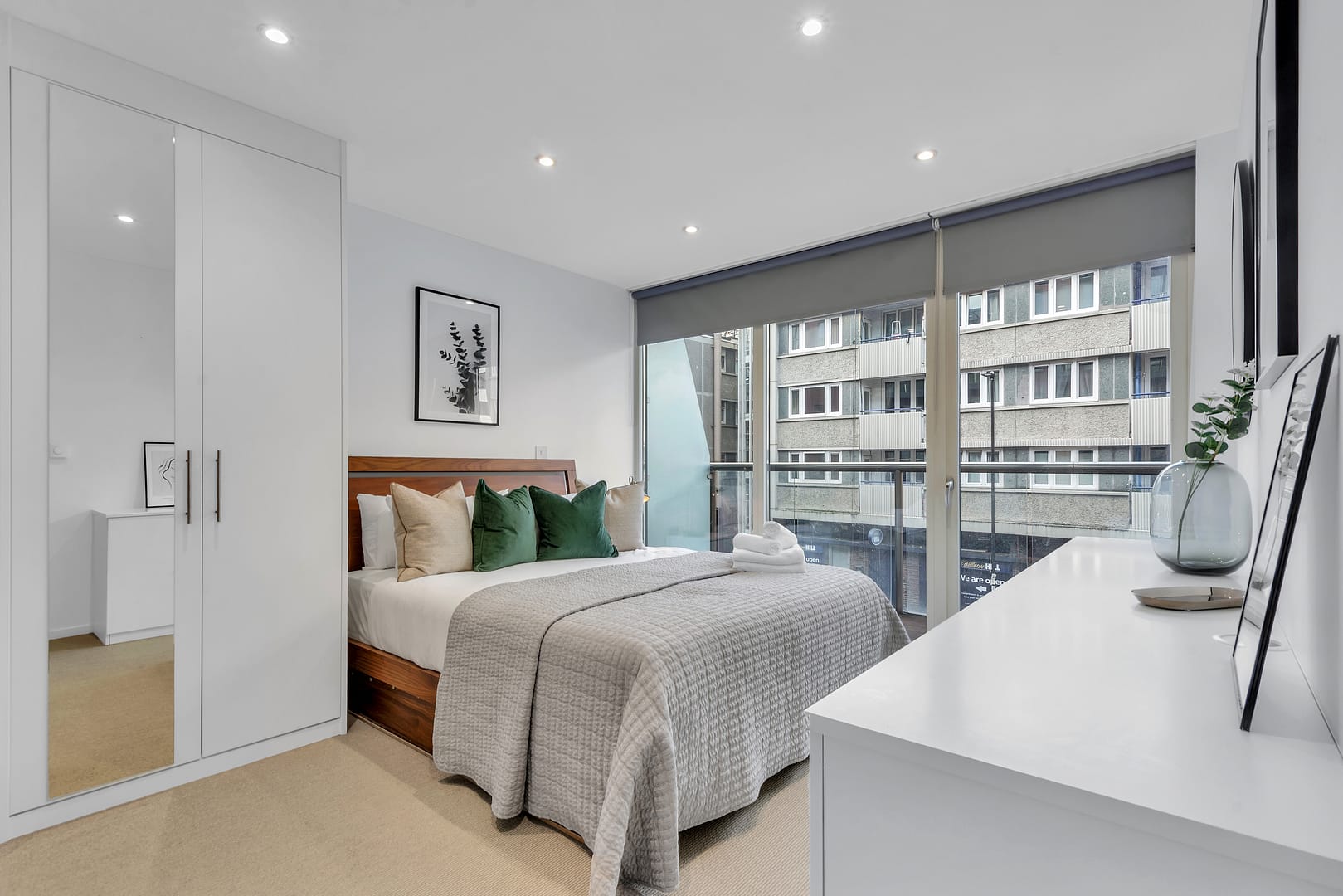 Each apartment is fully furnished with style and function in mind. Spacious open-plan living areas are bright and welcoming, featuring modern décor, large windows, and quality finishes throughout. The kitchens are fully equipped with everything needed for cooking and dining in, while the bedrooms are fitted with plush beds, soft linens, and ample wardrobe space. Smart TVs, high-speed Wi-Fi, and in-unit laundry facilities make it easy to settle in and feel at home. Whether you’re staying for a few nights or a few weeks, Old Street City Reach offers the flexibility, comfort, and quiet sophistication that seasoned travellers expect.
