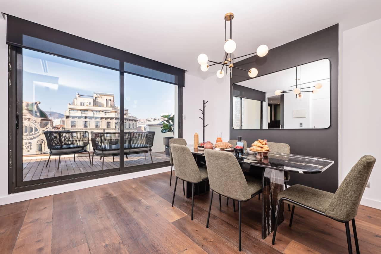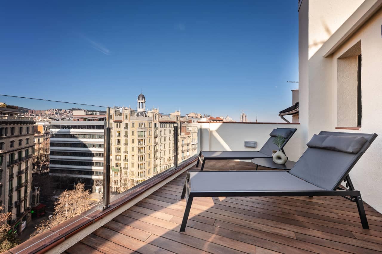 The location places you right in Barcelona’s bustling city centre, surrounded by vibrant streets lined with restaurants, tapas bars, and boutique shops. Architectural gems, lively plazas, and cultural treasures are all within easy reach, including the world-famous Sagrada Familia, only a short walk away. Guests can stroll through leafy avenues, discover Gaudí’s masterpieces, or spend the day exploring the city’s renowned museums. With convenient metro and bus connections nearby, you will have effortless access to every corner of Barcelona, from the Gothic Quarter to the golden coastline. After a day of sightseeing, enjoy a glass of wine on your private balcony or terrace while soaking up the energy of the city below.