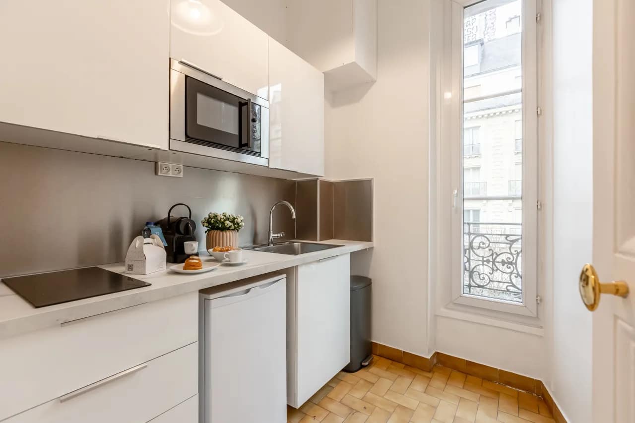 Whether you choose a Studio or One-Bedroom Apartment, each space is thoughtfully designed for comfort and independence. Enjoy the convenience of a fully equipped kitchen, high-speed Wi-Fi, Chromecast-enabled TV, and air conditioning. Start your morning with a delicious breakfast in our welcoming dining area and take advantage of 24/7 coffee access, giving you a taste of Parisian café culture anytime.