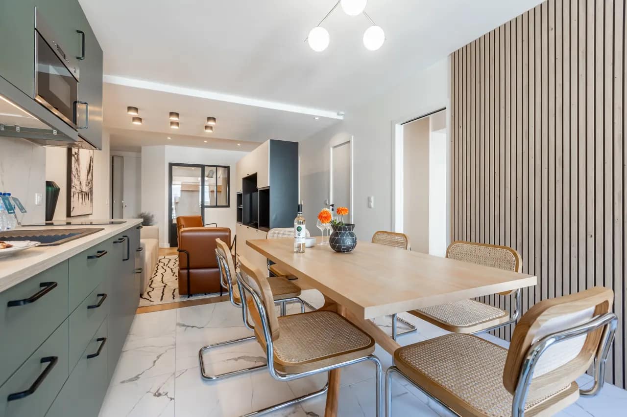 The apartments are fully furnished with contemporary décor, creating a calm and welcoming atmosphere after a day of exploring or meetings. Choose from a range of studio layouts or spacious one-bedroom apartments, some with balconies overlooking the rooftops of Montmartre. Each unit comes equipped with a kitchenette or full kitchen, flat-screen TV, free high-speed WiFi, and private bathrooms, ensuring maximum flexibility during your stay. Guests also benefit from à la carte hotel-style amenities, including weekly cleaning, 24/7 reception, secure underground parking, laundry facilities, and optional breakfast service. The location itself offers immediate access to Montmartre’s cultural highlights — from the vibrant Place du Tertre and Espace Dalí to historic cafés and local bakeries lining Rue Lepic and Rue des Abbesses.