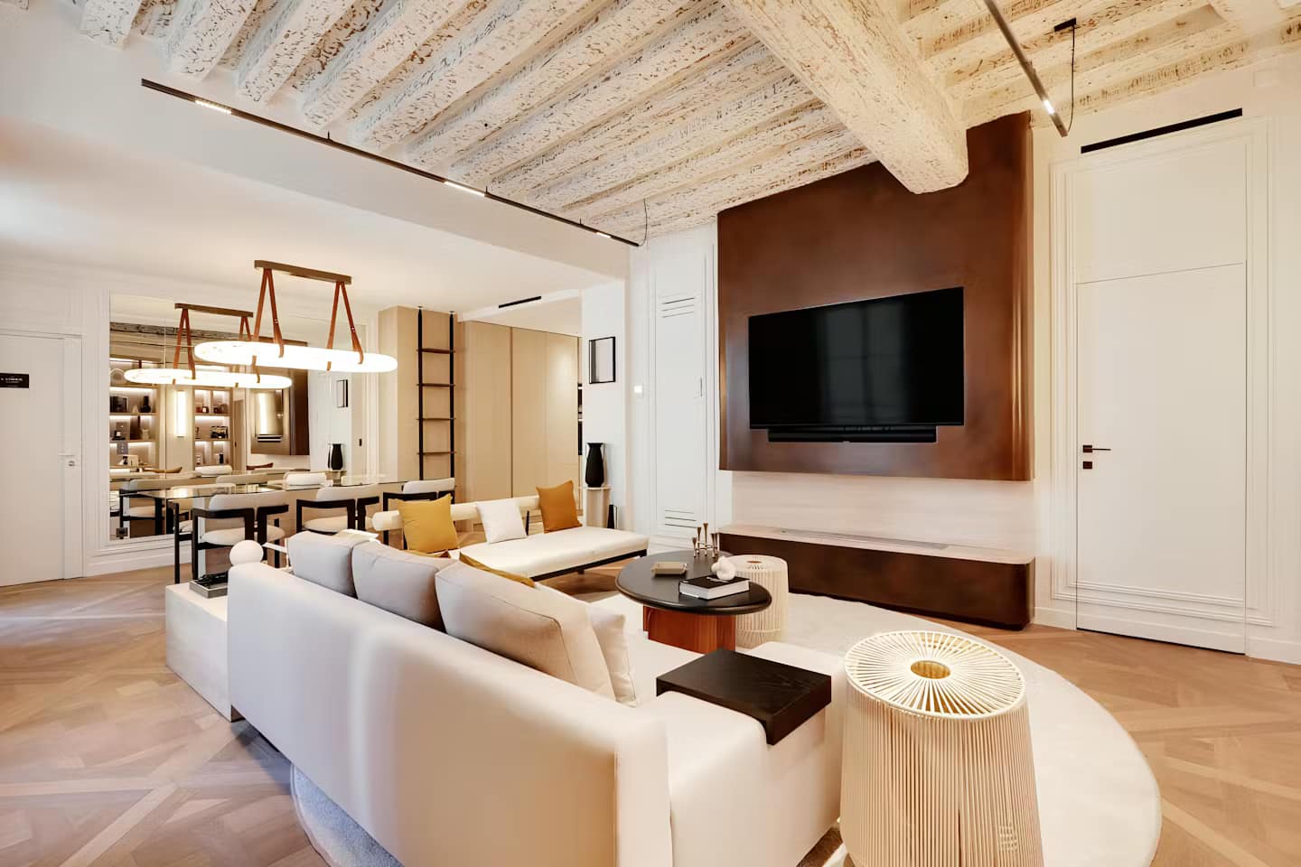 Perfectly situated in the heart of Paris on the historic Île Saint-Louis, the Paris Notre-Dame Apartments present two unique stays: a spacious three-bedroom duplex for up to six guests and an intimate one-bedroom retreat for two. Each apartment blends romance, glamour, and prestige with a modern twist, featuring high wooden-beamed ceilings, elegant contemporary furnishings, and expansive windows that open to captivating views of the Seine. Designed to embody the essence of Parisian living, these homes offer an inviting and refined atmosphere that makes them ideal for both romantic escapes and family getaways.