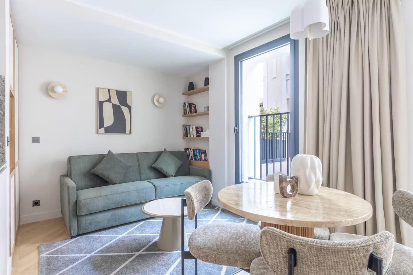 In the beating heart of the 9th arrondissement, this Paris Opéra luxury apartment offers an elegant and serene base for exploring the best of central Paris. Just a short walk from the grand Opéra Garnier and the historic Place de la Madeleine, the apartment places iconic landmarks, refined shopping, and gourmet food markets on your doorstep. The building’s Haussmannian bones have been given a thoughtful contemporary update, with clean lines, subtle tones and expansive windows offering a bright and peaceful retreat from the bustle of the city streets.