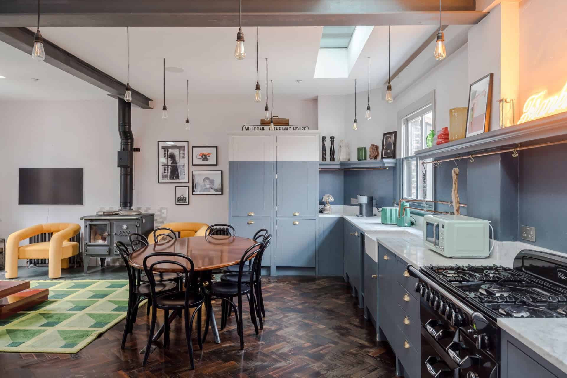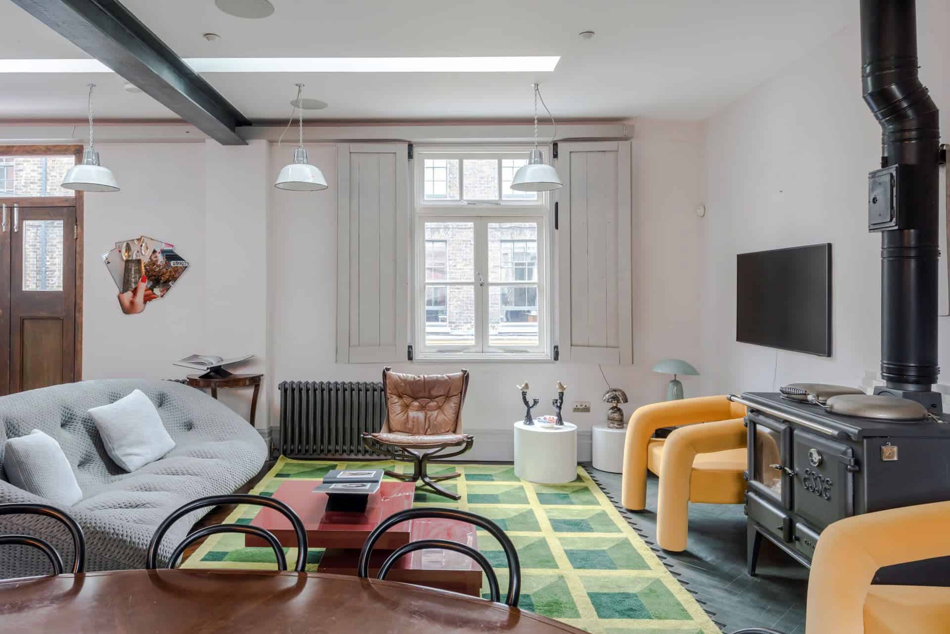 Welcome to this spectacular five-bedroom, four-bathroom retreat, one of the most striking Borough Market serviced apartments available. Just steps from London’s iconic Borough Market, this spacious home combines historic charm with modern flair, making it the ultimate base for food lovers and culture seekers alike. The open-plan living and dining space features original beams, bold designer furnishings, and a cosy wood-burning stove, perfect for gathering after a day exploring. Step out onto the private terrace to enjoy unforgettable views of The Shard and the city skyline, an ideal spot for morning coffee or evening cocktails with friends and family.