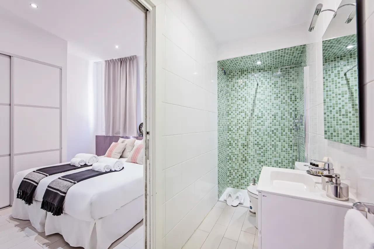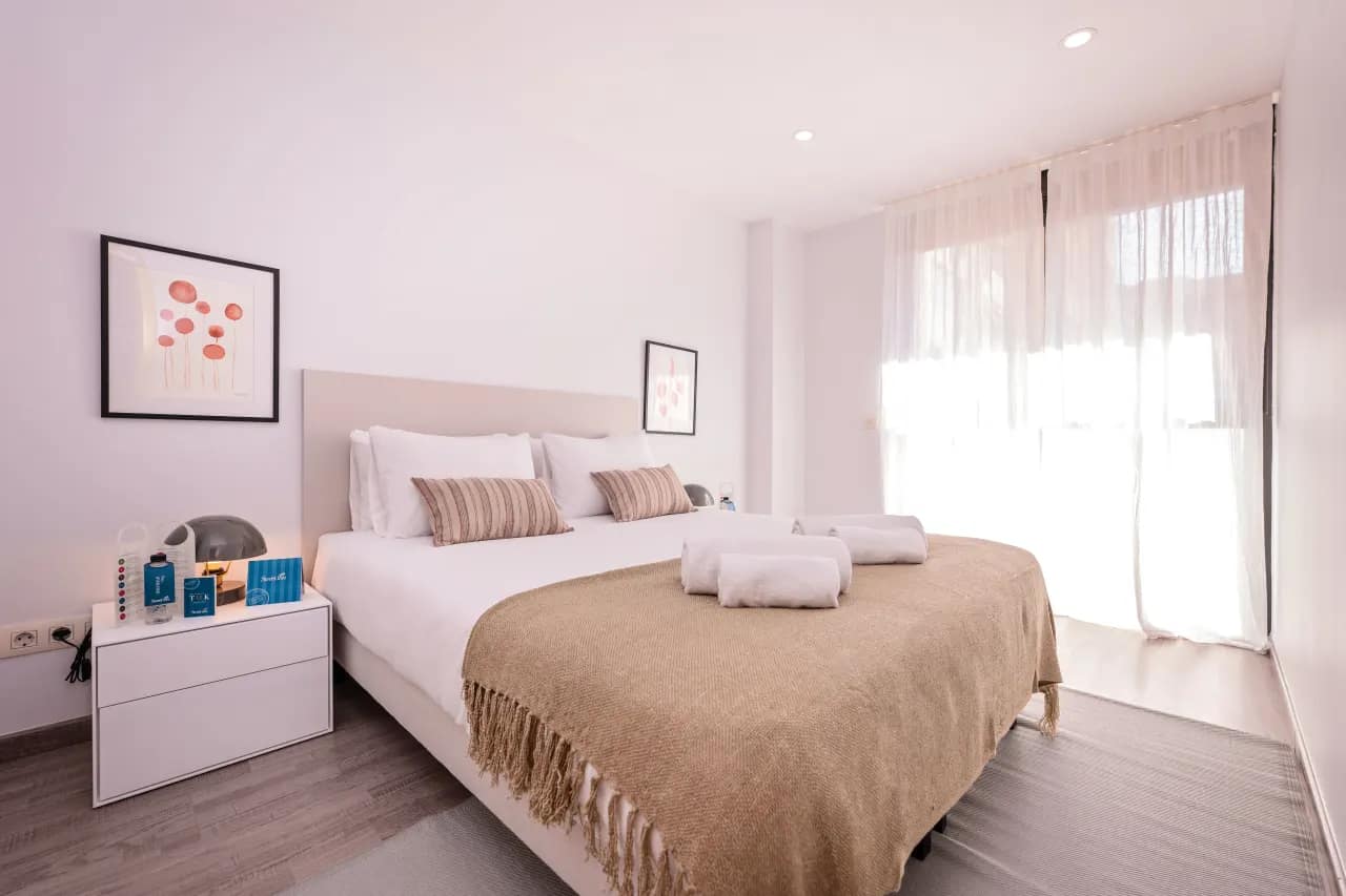 Inside, each apartment is a showcase of refined design. A local interior designer has artfully blended vintage furnishings, pastel accents, and floor-to-ceiling windows to create bright, inviting interiors. Plush bedrooms dressed in crisp linens promise restful nights, while sleek bathrooms feature rain showers and premium toiletries. Generous living spaces invite relaxation after a day of sightseeing, and fully equipped kitchens—with ovens, microwaves, Nespresso machines, and premium cookware—make preparing anything from breakfast to a tapas feast a pleasure. Select apartments feature private terraces complete with gazebos, offering a perfect spot for morning coffee, evening wine, or al fresco dining under the Mediterranean sky.