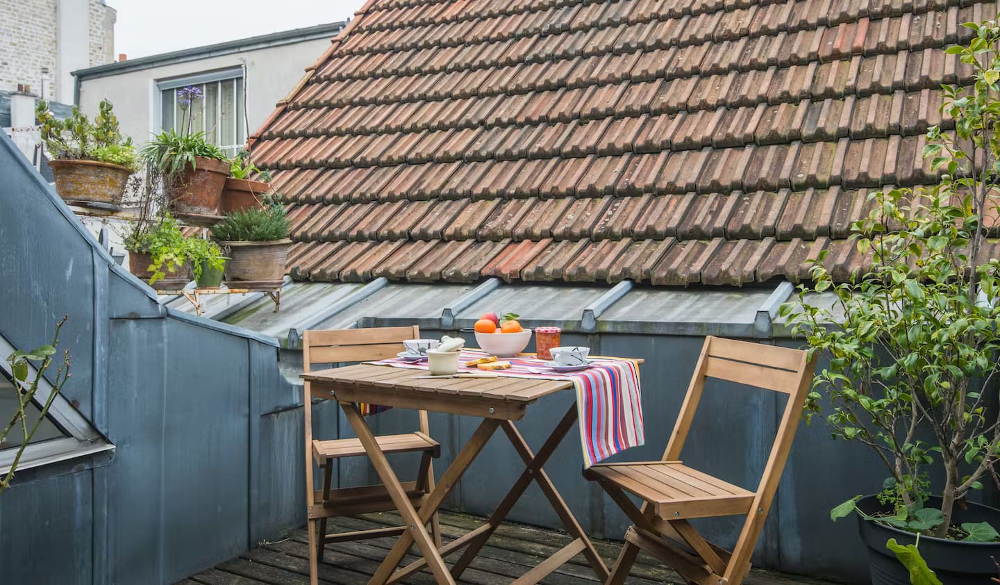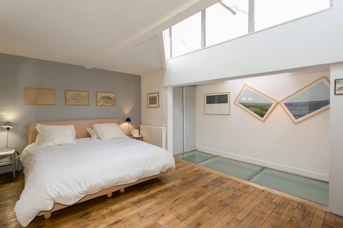 Porte d’Orleans Apartments offer a diverse selection of one, two, three, and four bedroom units, perfectly suited for families, groups, or business travellers seeking a stylish Parisian stay. The one bedroom apartment spans 40m² and accommodates up to three guests, while the two bedroom covers 86m² and sleeps six. For larger groups, the three bedroom at 117m² hosts eight guests, and the expansive four bedroom spans 160m² for up to ten guests. Each apartment is thoughtfully designed by local interior decorators to balance sleek modern lines with warm, welcoming Parisian touches. Skylights and large windows fill the spaces with natural light, while wooden accents and carefully chosen furnishings create a sophisticated yet cosy atmosphere.