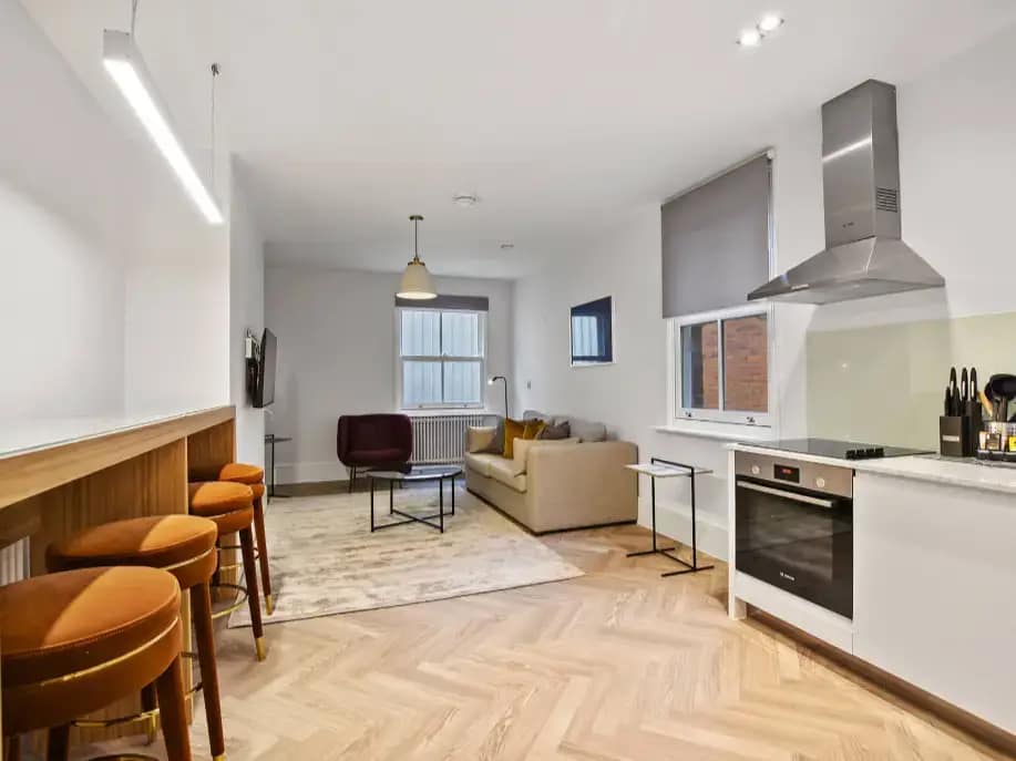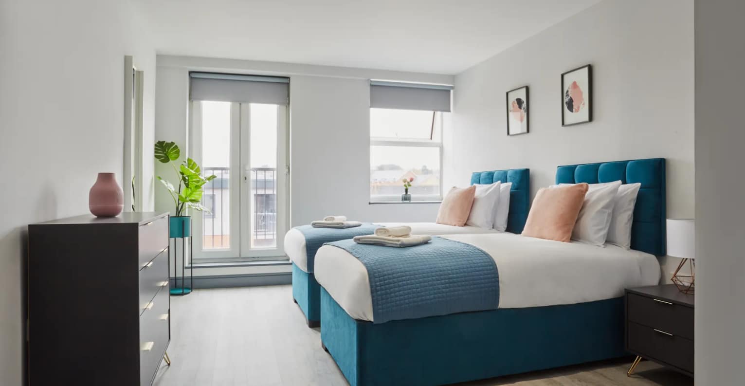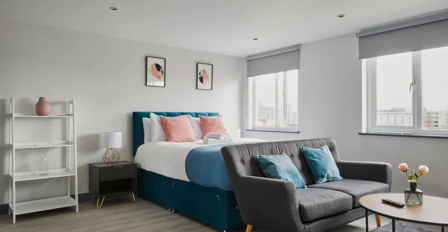 Tucked away on a peaceful, tree-lined residential street in the heart of Berkshire, Reading Castle Crescent Apartments offer an elegant and tranquil stay just 12 minutes’ walk from Reading’s vibrant town centre. Set within a beautifully restored Victorian building, these one- and two-bedroom serviced apartments combine historic charm with modern living. Interiors are bright and contemporary, featuring versatile layouts that cater equally well to business travellers, couples, and longer-stay guests. Each apartment includes a king-sized bed, a comfortable lounge, and a fully equipped kitchen complete with a dishwasher and washer/dryer—ideal for those seeking comfort and independence during their time in Reading.
