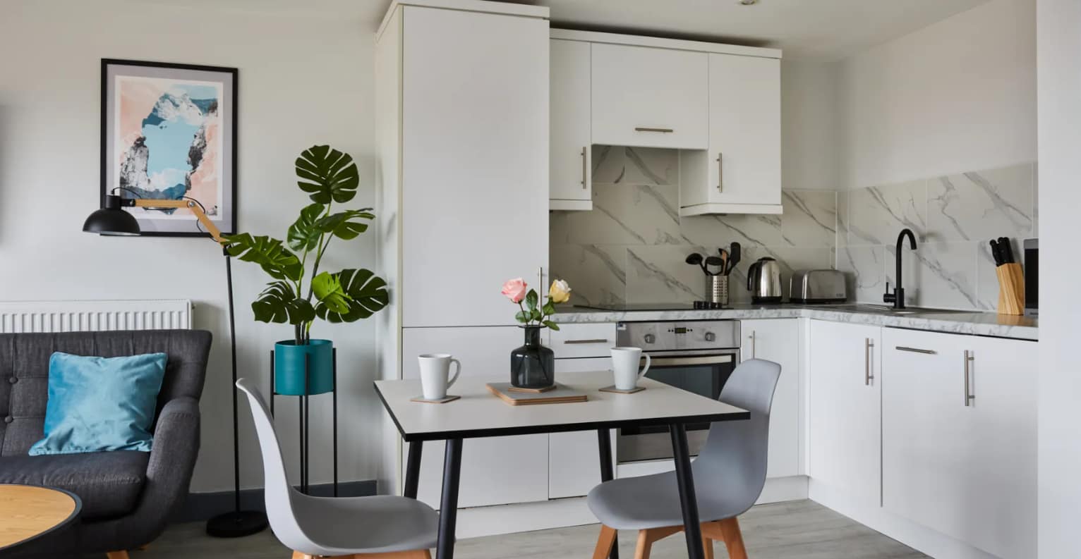 Reading Crown Street Apartments offer stylish, spacious, and fully renovated accommodation right in the heart of Reading town centre. Designed with both business and leisure travellers in mind, these contemporary studio, one-, and two-bedroom apartments feature generous open-plan living spaces, modern furnishings, and a homely atmosphere that makes extended stays feel effortless. Each apartment is self-contained and equipped with a fully integrated kitchen, a sleek bathroom, and in some cases, an additional en-suite for extra convenience. High-speed Wi-Fi is included, and thoughtful layouts ensure guests can relax, work, or dine comfortably during their stay.