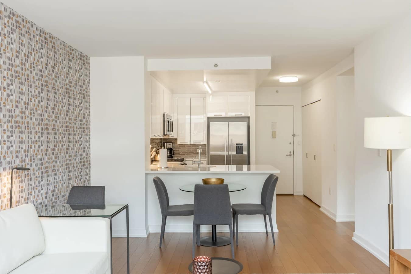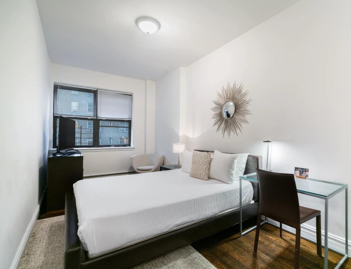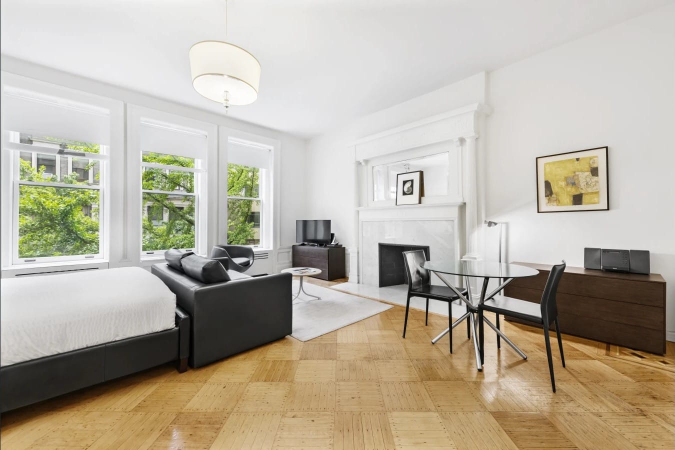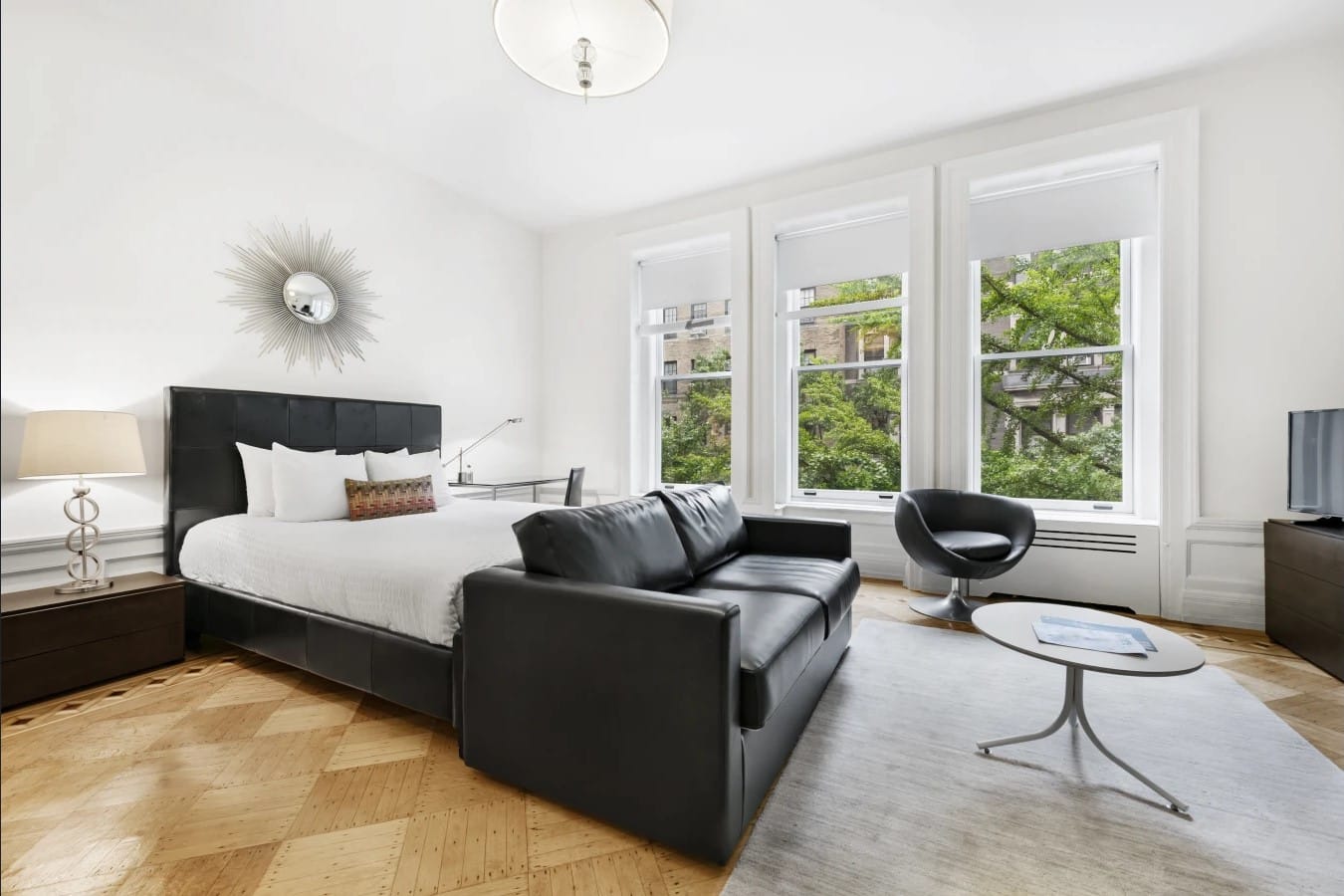 Located at 347 West 87th Street in Manhattan’s Upper West Side, this charming and stylishly designed studio offers a peaceful retreat in a classic New York brownstone. Set in a historically preserved, renovated building, the studio features high ceilings, original hardwood floors, a newly renovated kitchen, and a linen closet for added convenience. The bed provided is queen size, and the apartment’s warm, classic aesthetic is ideal for residents seeking both character and comfort.