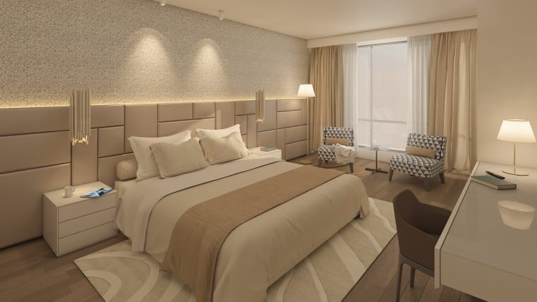Spread across a beautifully landscaped gated community, Riyadh Hittin Villas features 90 elegant villas available in two-, three-, and four-bedroom layouts. Each villa is thoughtfully designed, combining contemporary style with subtle Arabesque touches that reflect the region’s rich cultural heritage. Select villas offer the added indulgence of a private in-villa pool, making them an ideal choice for families or long-stay guests seeking extra privacy and relaxation. Spacious floor plans include expansive living and dining areas, modern kitchens with high-end appliances, and luxurious finishes that cater to the needs of discerning travellers and residents who expect both function and refined aesthetics.