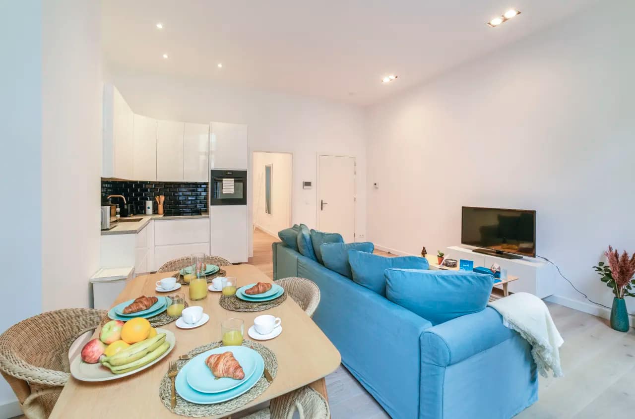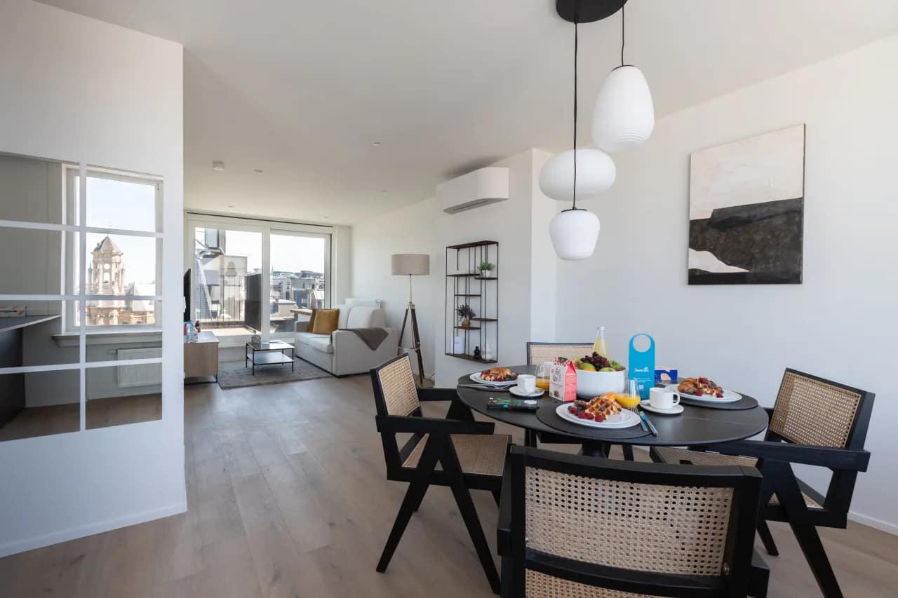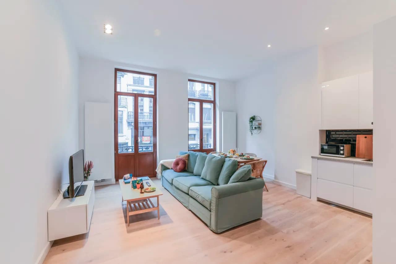 The Rue Antoine Dansaert Apartments offer a chic retreat in one of Brussels’ most fashionable neighbourhoods. With a range of unit types to suit every traveller, you can choose between the cosy 30m² studio for two guests, the bright and modern one-bedroom apartment with one bathroom (85m²) ideal for couples or business travellers, or the stylish two-bedroom, two-bathroom apartment (85m²) that accommodates up to four guests. Each unit has been carefully designed by a local interior designer, combining elegant furniture, soothing colours, and thoughtful details that reflect the creative spirit of the Dansaert district.