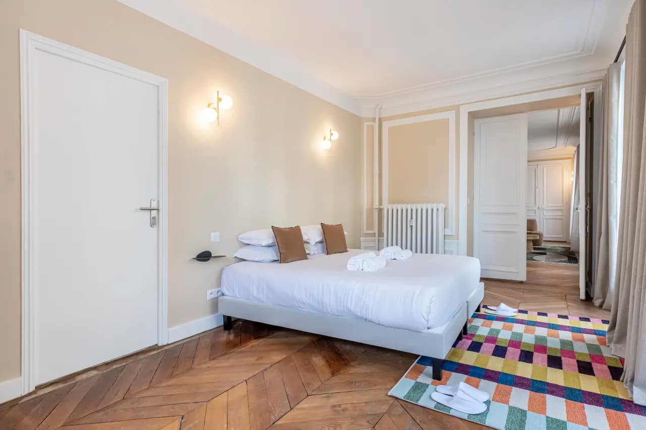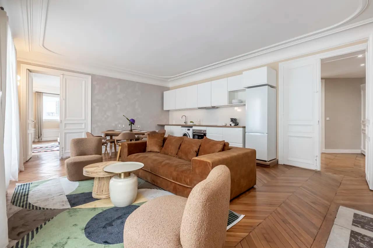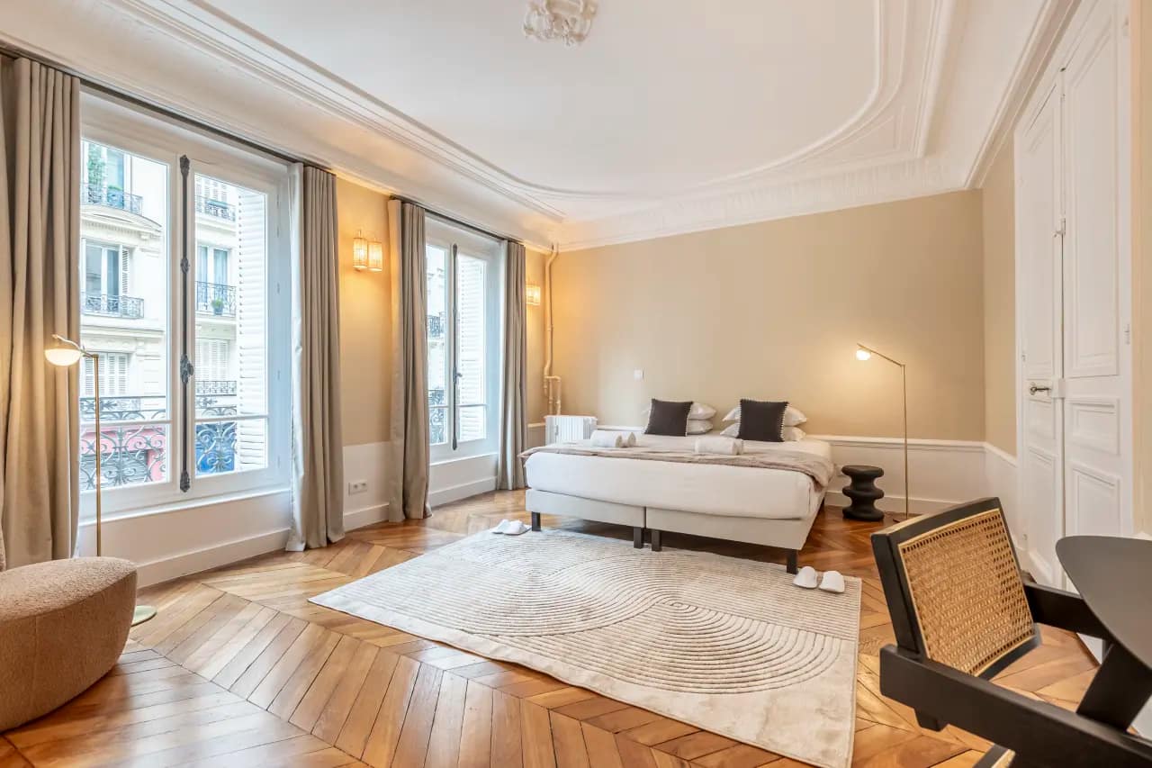 In the elegant Saint-Lazare district, the Rue de Milan Apartments capture the essence of Parisian living, offering a collection of stylish residences ranging from one to four bedrooms. Designed by our local interior team, each apartment blends sophistication with comfort through bold murals, high ceilings, wooden rafters, and quirky decorative touches that bring a fresh twist to classic Parisian charm. Guests can choose from spacious layouts, including the flagship 4-bedroom, 2-bathroom apartment (130m²) for 10 guests, the artsy 3-bedroom, 1-bathroom residence (80m²) for 8 guests, the cosy 2-bedroom, 1-bathroom apartment (70m²) for 6 guests, or the intimate 1-bedroom, 1-bathroom retreat (36m²) for 2 guests. With fully equipped kitchens in every unit, you’ll enjoy the freedom of home dining alongside the comfort of hotel-style amenities.