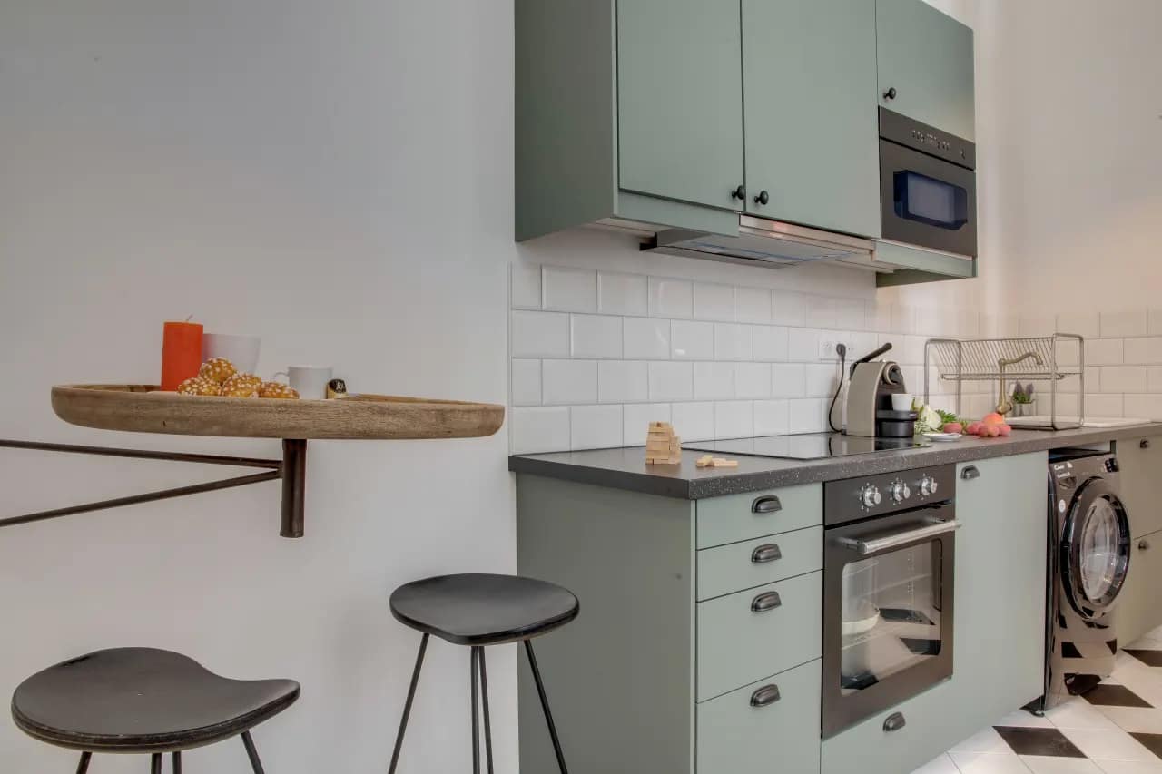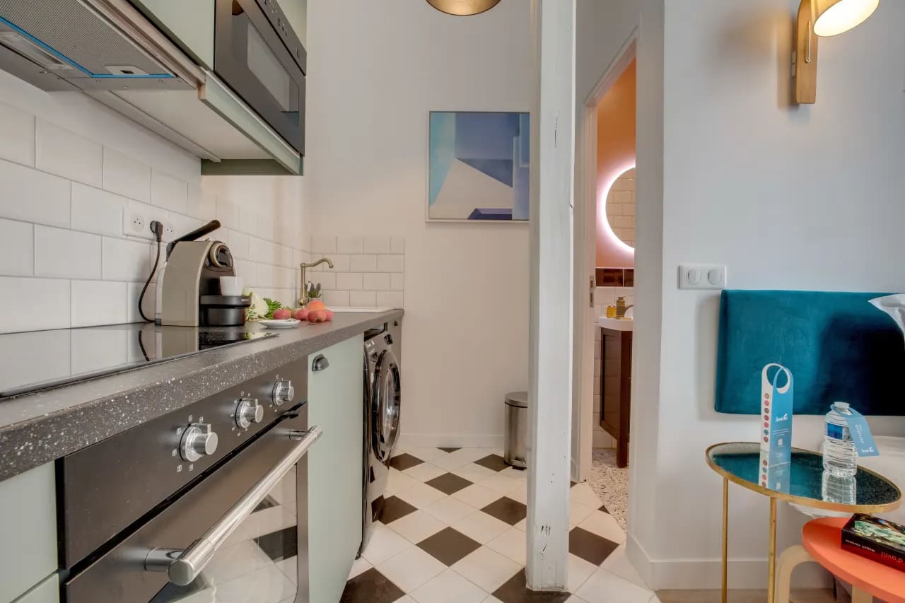Tucked away in the lively 10th arrondissement, the Rue La Fayette Apartments offer a stylish and intimate escape in the heart of Paris. Designed by a local interior designer with a keen eye for detail, this 30 m² studio blends modern comfort with classic Parisian elegance. The studio comes fully equipped with everything you need for a comfortable and worry-free stay, including high-speed WiFi, international TV channels, a Nespresso machine, hotel-quality beds and linens, luxury toiletries, a smart lock system, air conditioning, a washing machine, a kitchenette with a stove, oven, microwave, refrigerator, and dishwasher, as well as thoughtful extras such as a hairdryer, ironing facilities, baby amenities on request, and convenient luggage storage to make your Parisian getaway as seamless as possible.