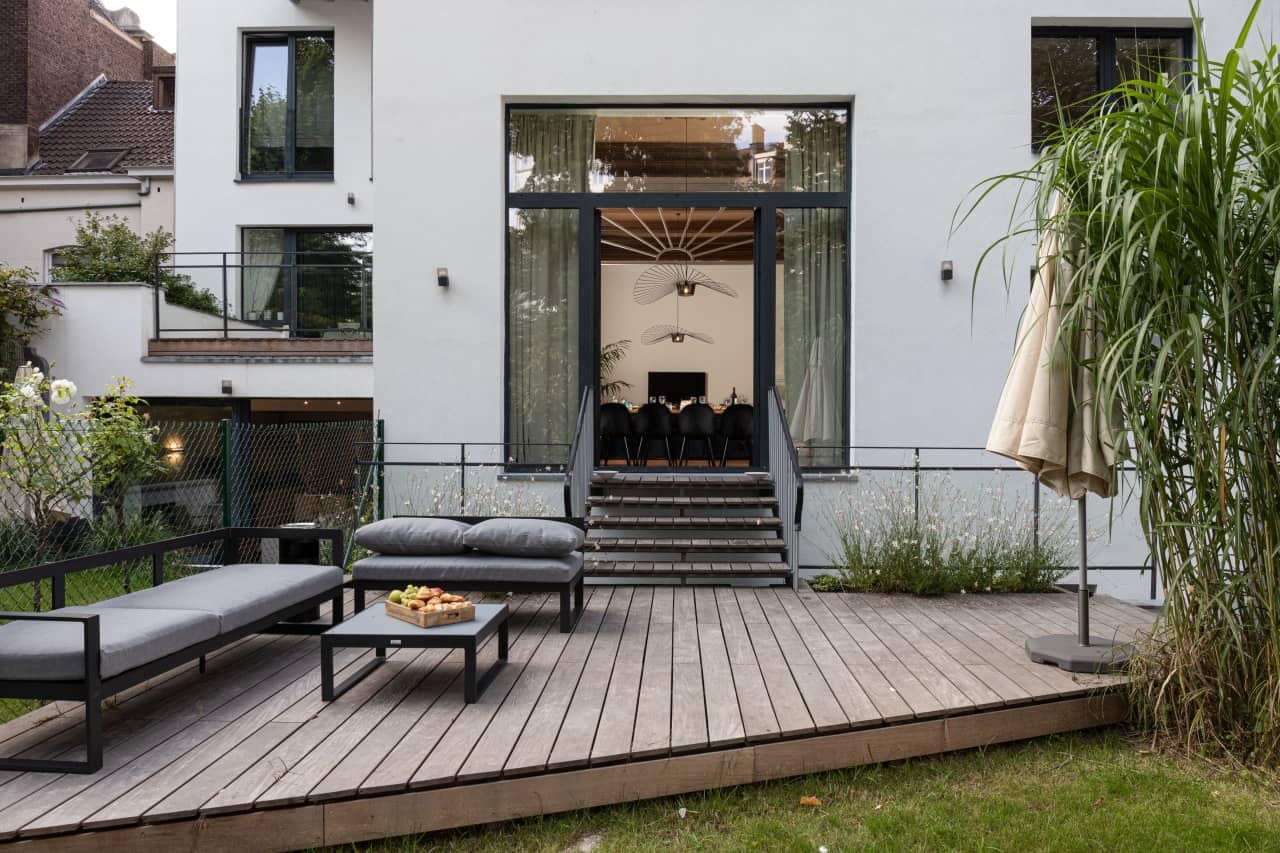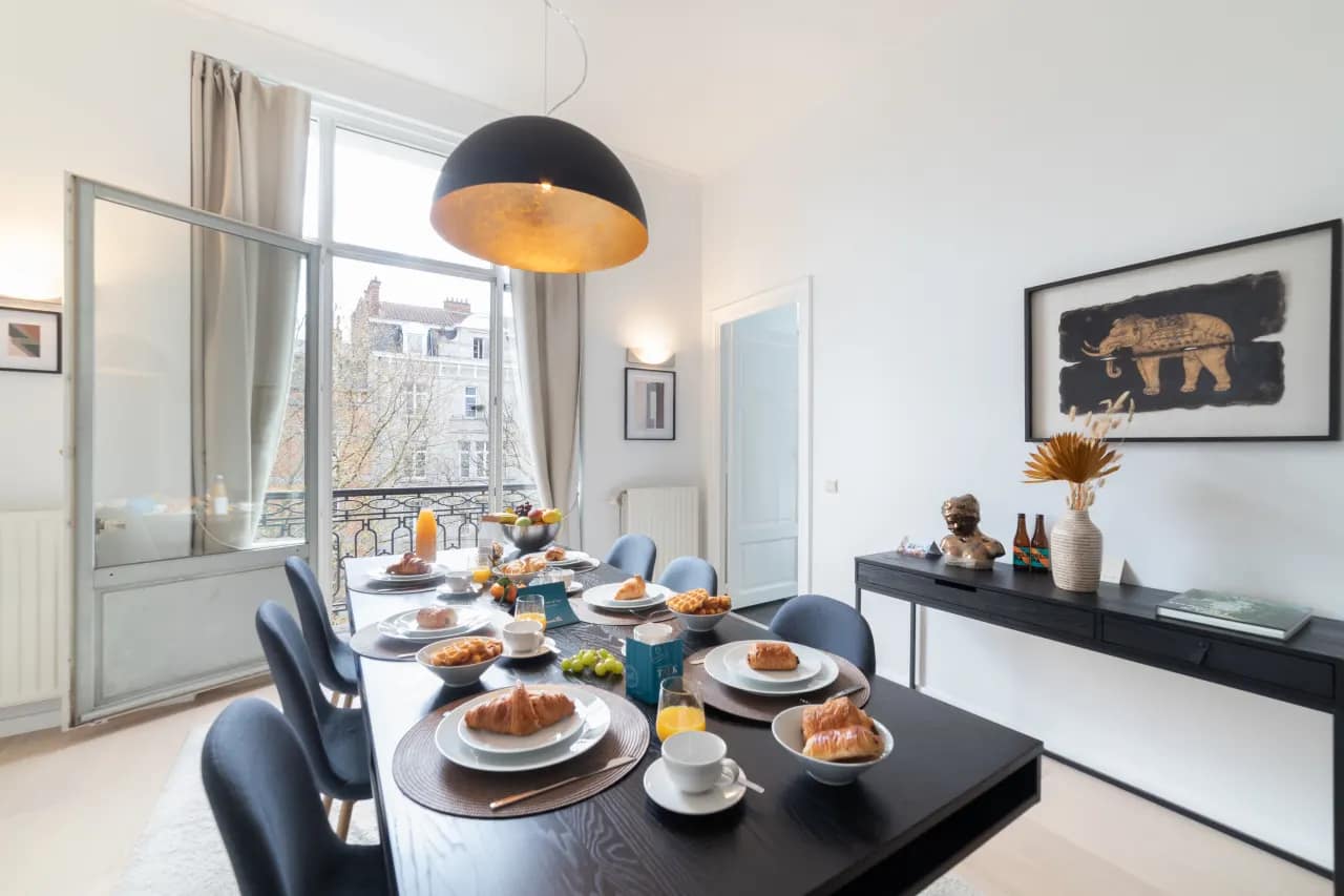 The Rue St Bernard Apartments offer a selection of stylish and versatile units designed to suit every type of traveller. Guests can choose from a cosy 54m² studio for two people, bright and spacious one-bedroom apartments ranging from 65m² to 76m² for up to four guests, or the impressive four-bedroom, two-bathroom townhouse-style residence spanning 230m², ideal for groups of up to ten. The standout four-bedroom apartment is a true gem, featuring a high ceiling, an elegant fireplace, and expansive communal living spaces with delightful garden views. The large living room flows seamlessly into a dining area, perfect for hosting shared meals.