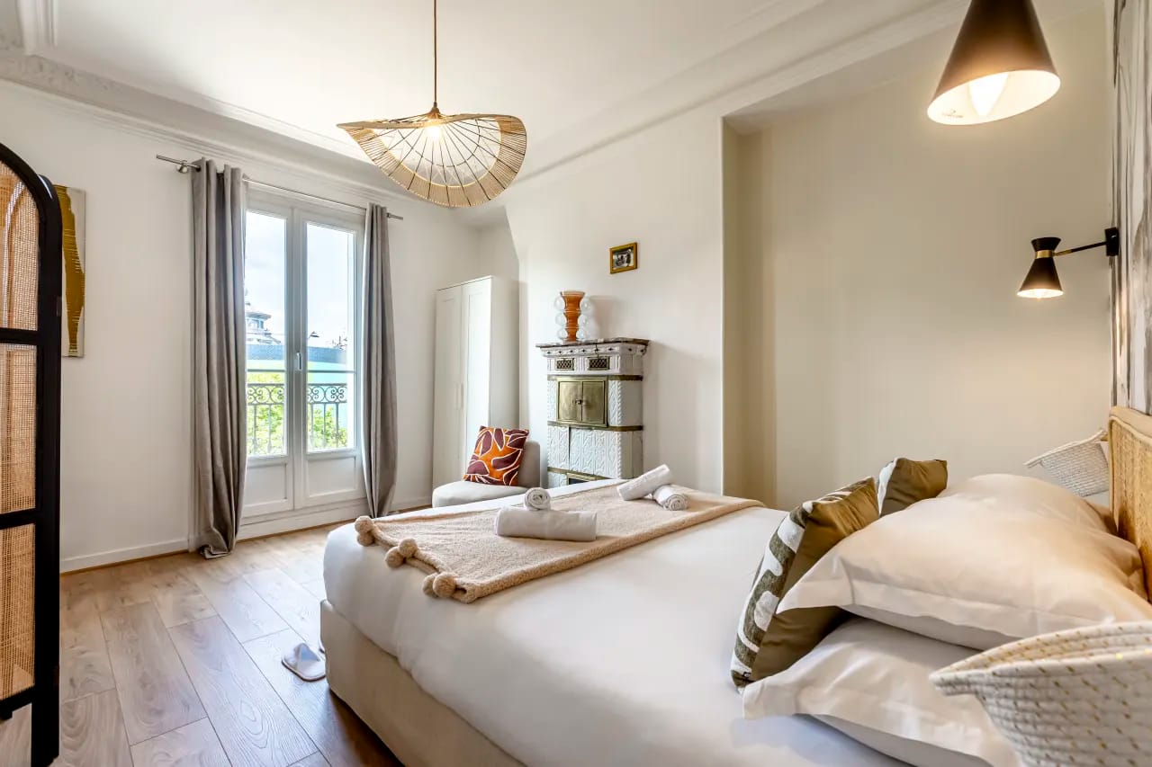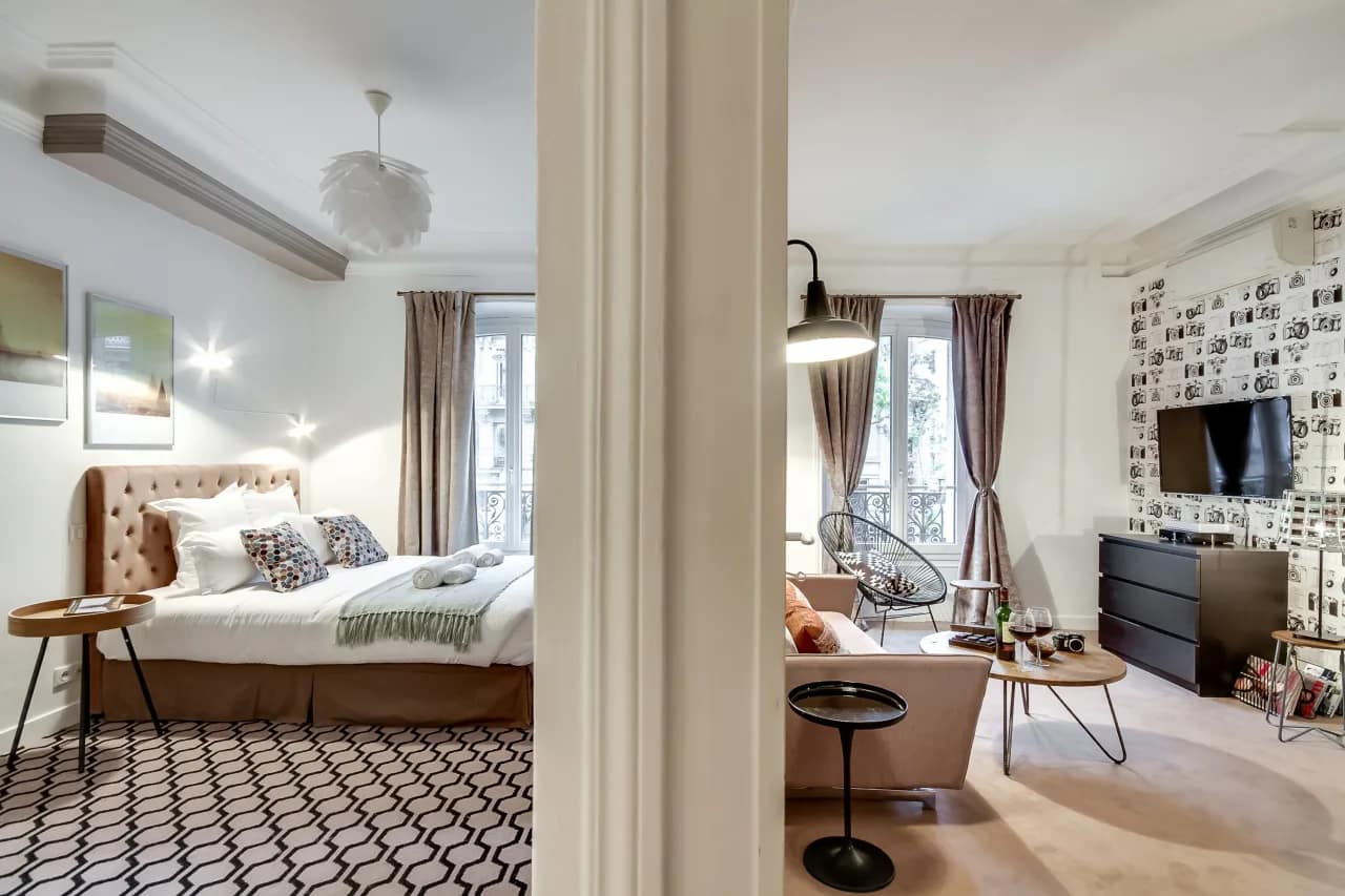 Tucked away in the heart of the 6th arrondissement, L’Échappée Saint-Germain offers all the charm you’d expect from a Saint-Germain luxury apartment. With a warm, minimalist design and Provencal touches, this elegant two-bedroom home sits just minutes from the lush lawns of the Luxembourg Gardens. Parquet floors, vintage dressers, and sunlight streaming in from tall windows create a serene ambiance perfect for both short stays and longer escapes.