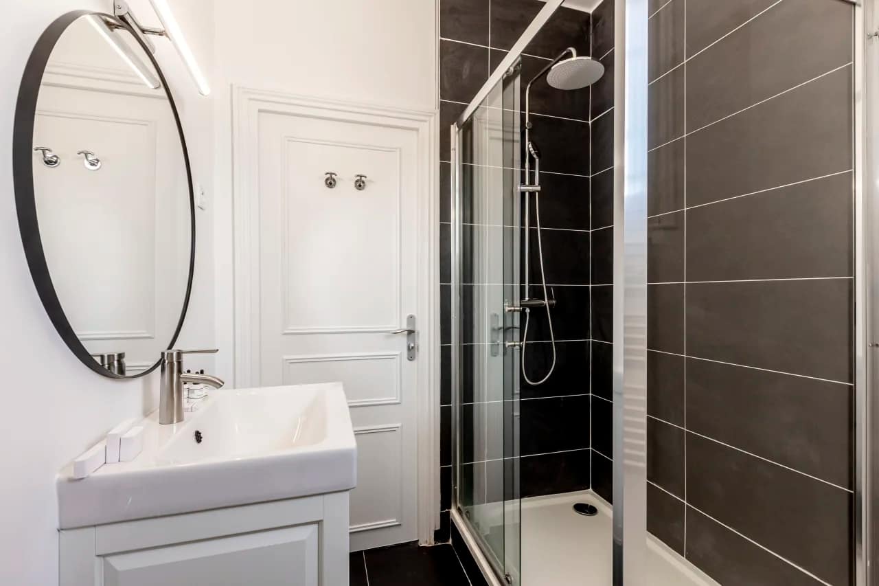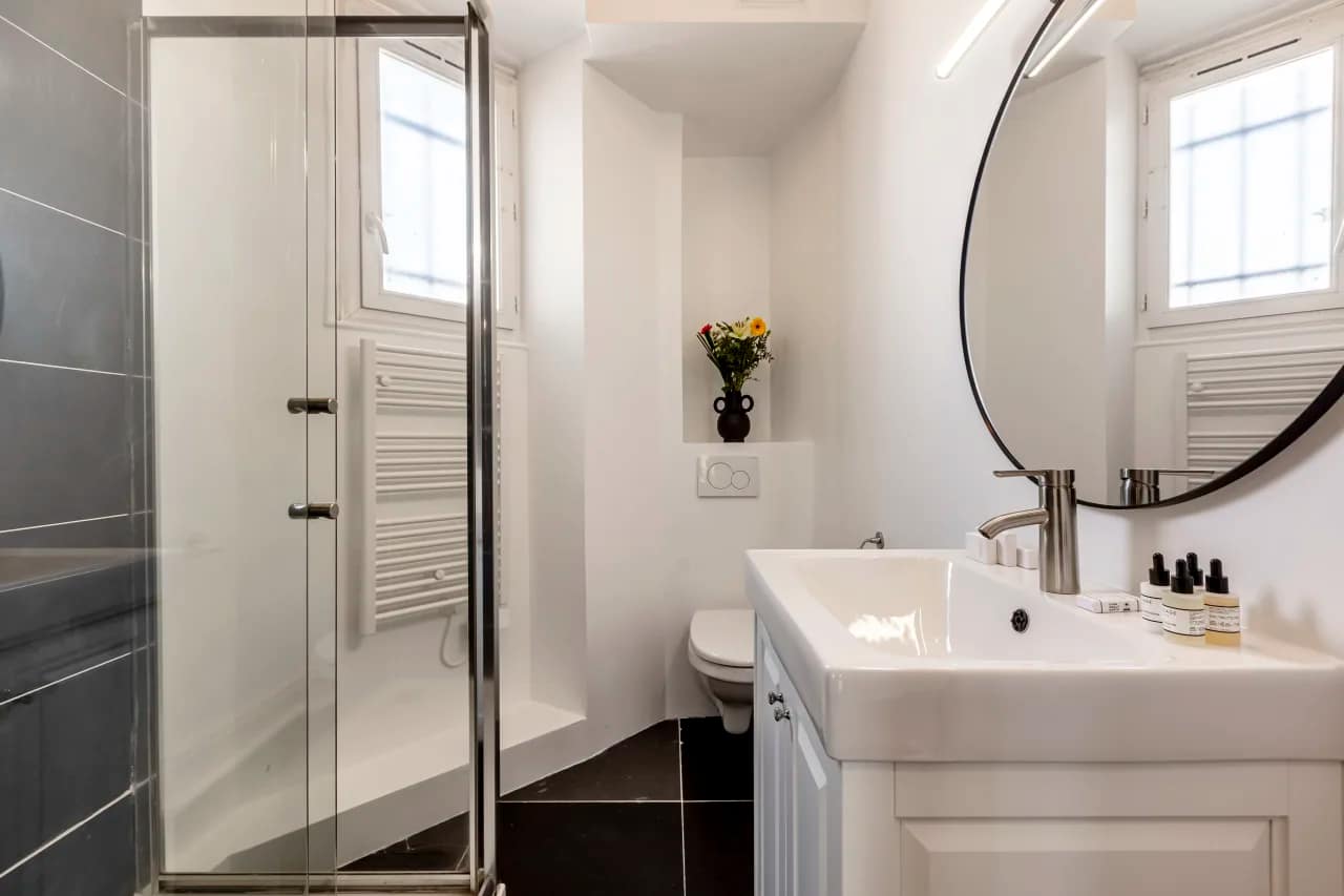 Inside, you’ll find two beautifully appointed bedrooms and two modern bathrooms, making it an ideal choice for couples, friends, or small families. The layout has been thoughtfully designed for comfort and practicality, with an open-plan kitchen, cosy lounge space, and those little details — like enamel sinks and curated wall art — that elevate the everyday. And while the home is peaceful and tucked away, you’re steps from vibrant cafés, brunch spots, and Saint-Germain’s iconic literary haunts.