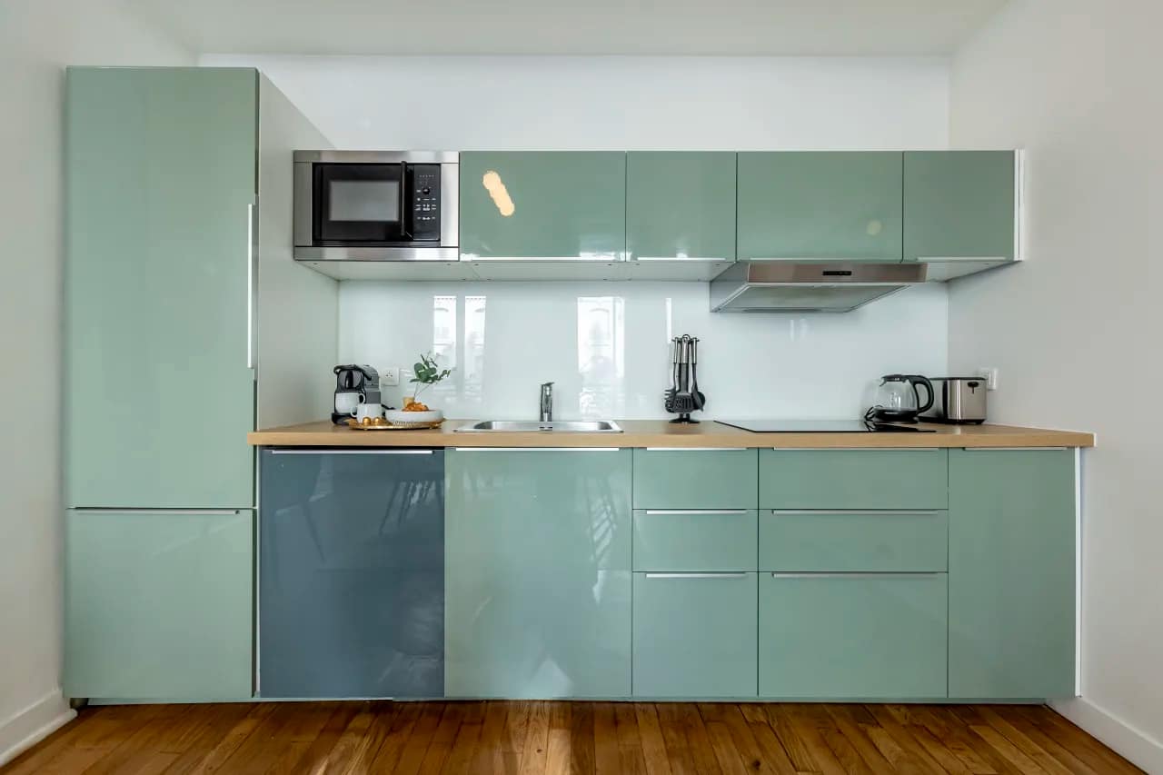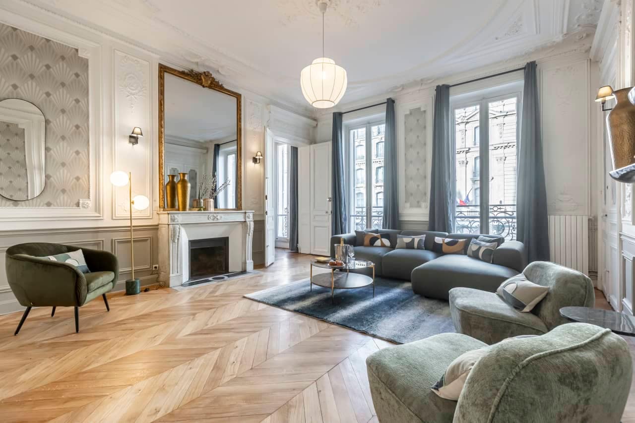 In the exclusive Saint-Lazare neighbourhood, the Saint-Lazare Apartments transport you to the heart of Paris with style, space, and comfort. The flagship four-bedroom apartment accommodates 8 guests across 4 bedrooms, 3 bathrooms, and 180m² of elegant living space. With whimsical wallpaper, antique-style furniture, and contemporary finishes, our interior designer has created a refined home with character. Large windows illuminate the rooms with natural light, while the playful children’s bedroom, featuring a treehouse bunk bed, makes it ideal for families. A fully equipped kitchen provides everything needed for in-house dining, while multiple bathrooms ensure privacy and convenience for larger groups.