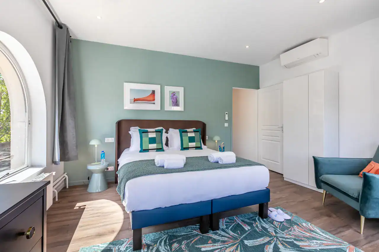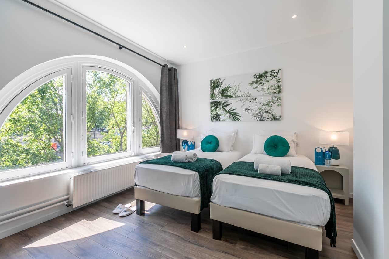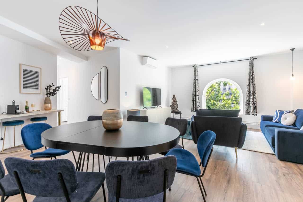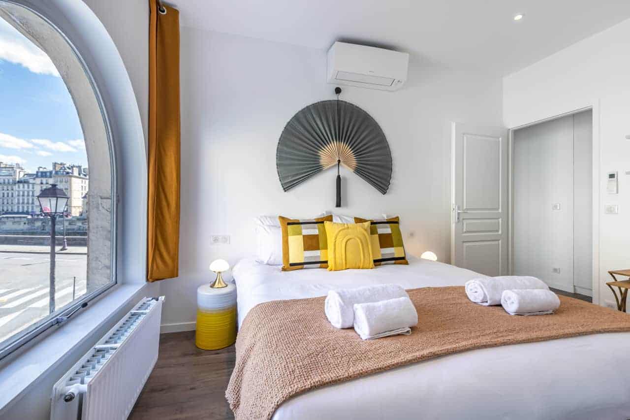 Ideally situated in the heart of Paris, the Sainte-Chapelle Apartments offer two exquisite residences designed with refined Parisian elegance and comfort. Guests can choose between the expansive 4-bedroom, 3-bathroom apartment (117m²) for up to 10 guests or the charming 3-bedroom, 2-bathroom apartment (103m²) for up to 8 guests, each thoughtfully styled by our local interior designers to capture the glamour of French living. Expansive windows bathe the interiors in natural light, while elegant furnishings, sophisticated décor, and fully equipped kitchens create a welcoming environment for families and groups. Guests will also enjoy a full range of modern comforts, including air conditioning, a fully equipped kitchen with dishwasher and Nespresso machine, luxury bedding and high-end toiletries, digital keys with smart lock access, a washing machine, and thoughtful extras such as baby amenities on request, making your stay both effortless and indulgent.