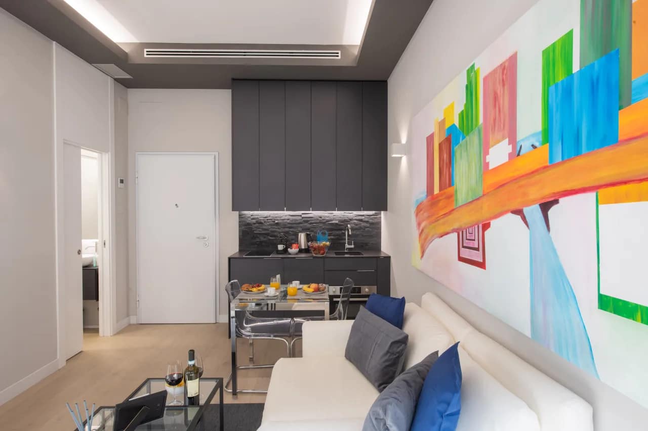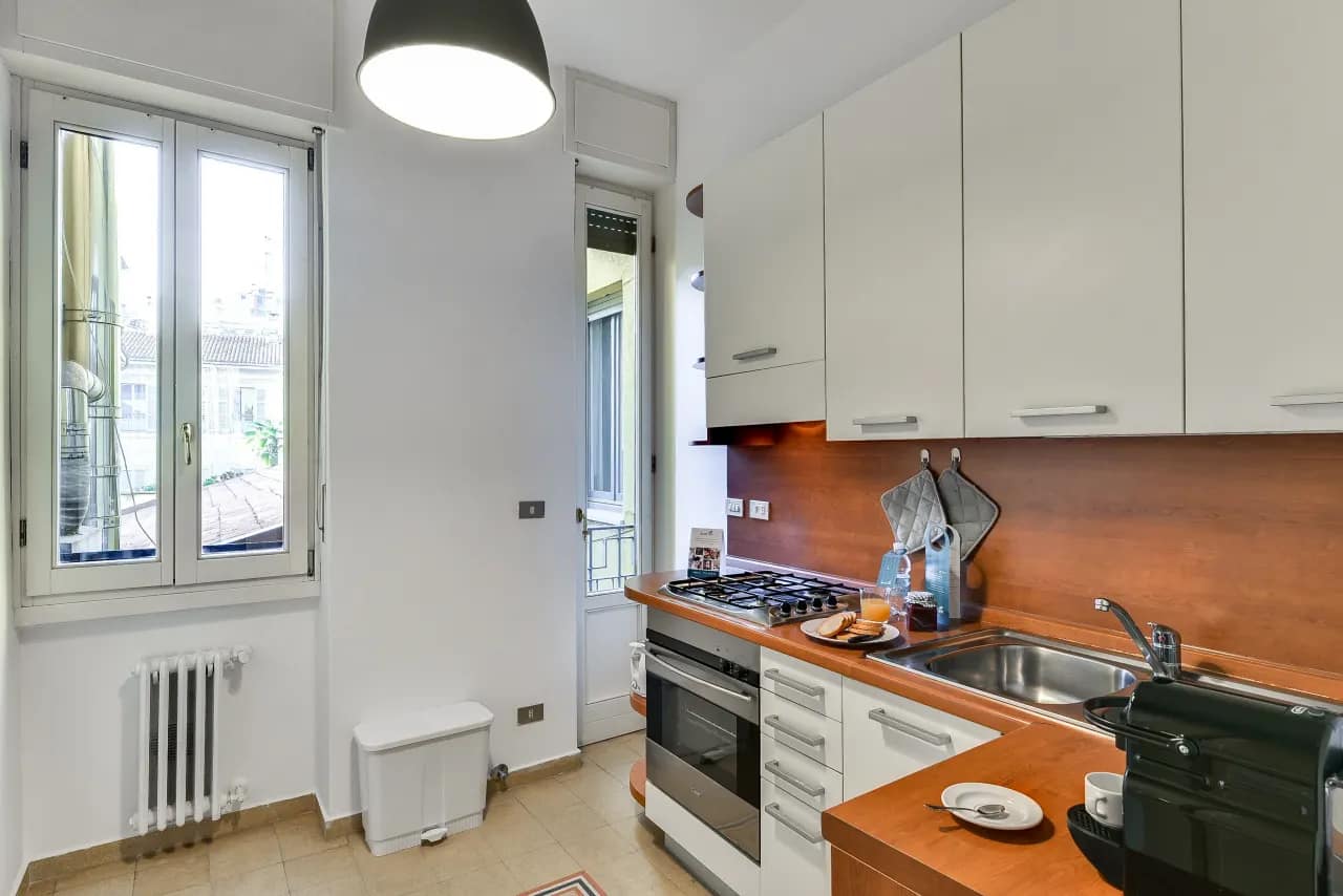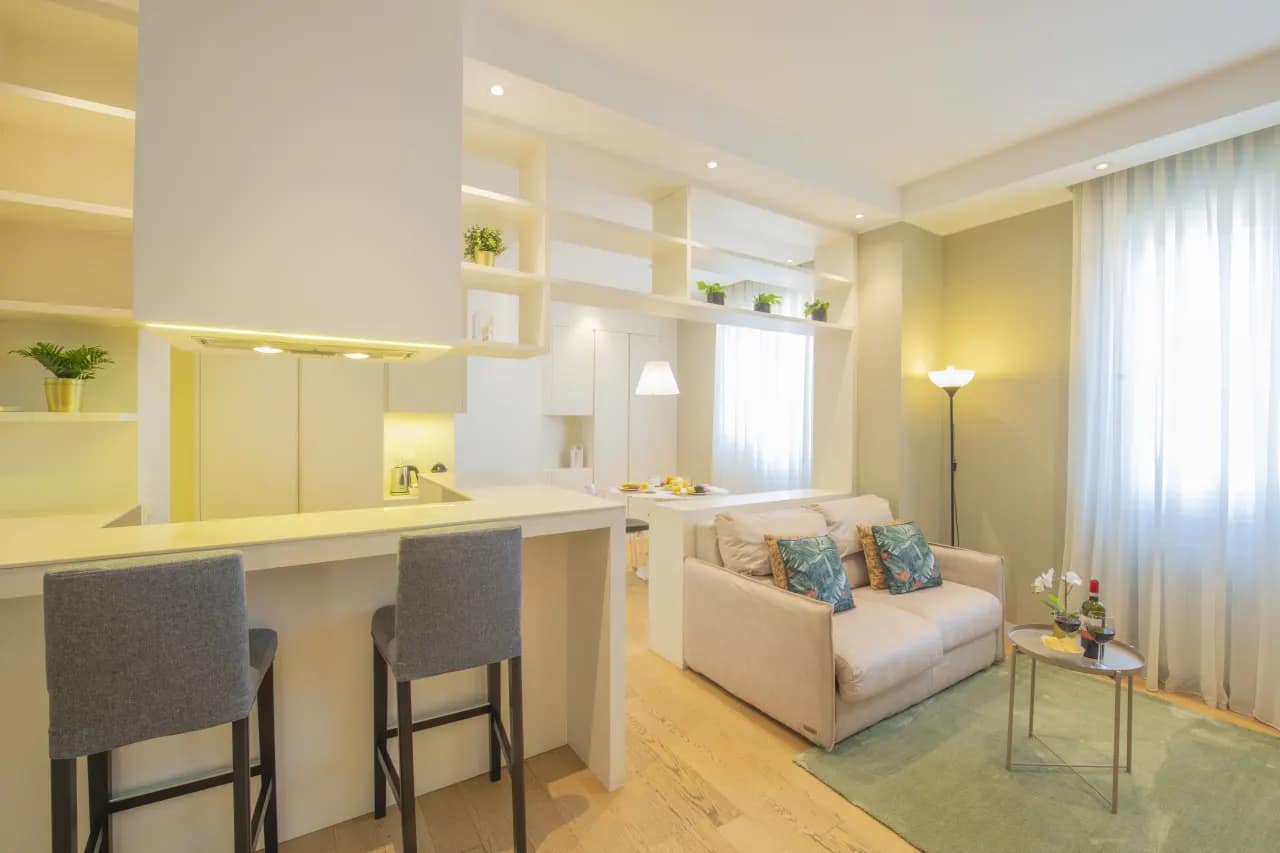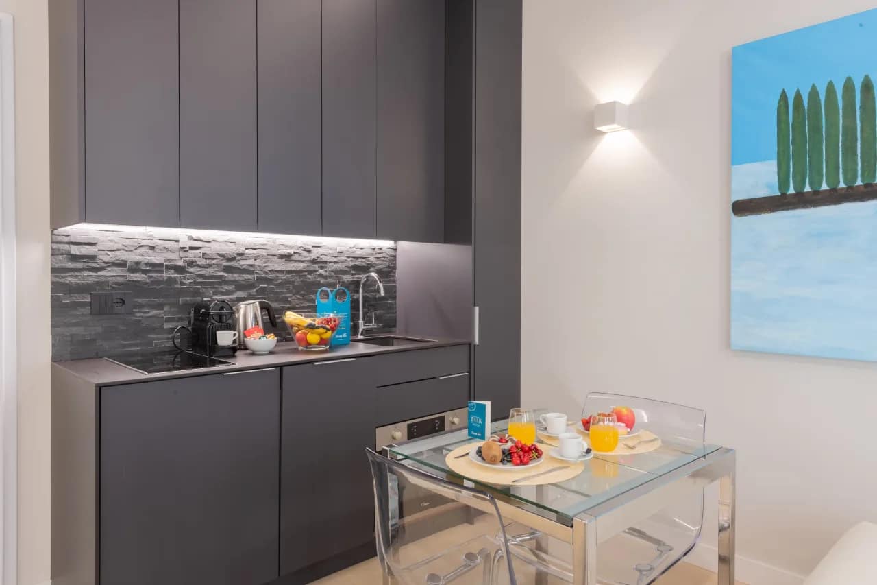 The apartments themselves are designed with comfort, style, and practicality in mind. Each unit offers modern amenities such as air-conditioning, free WiFi, flat-screen TVs, and well-equipped kitchen or kitchenette facilities that allow you to dine in when you want. Bathrooms are clean, well-furnished, often with good fixtures, and the furnishings balance modern minimalism with warm touches of Italian character. The rooms are sound-insulated, helping to buffer the buzz of Centro Storico while still letting you enjoy the energy of living in the centre of Milan. Some units have views over the castle or Parco Sempione—waking up to the silhouette of ancient towers or lush greenery can feel special. Lift access, shared utilities like laundry (where provided), and secure guest access add to the convenience for stays both short and longer.