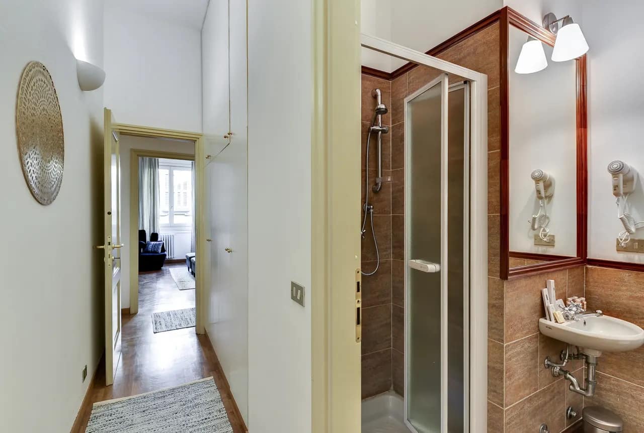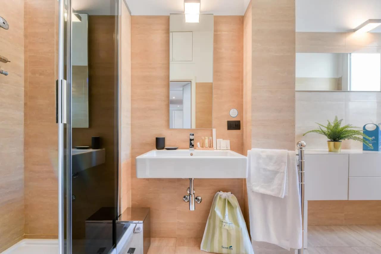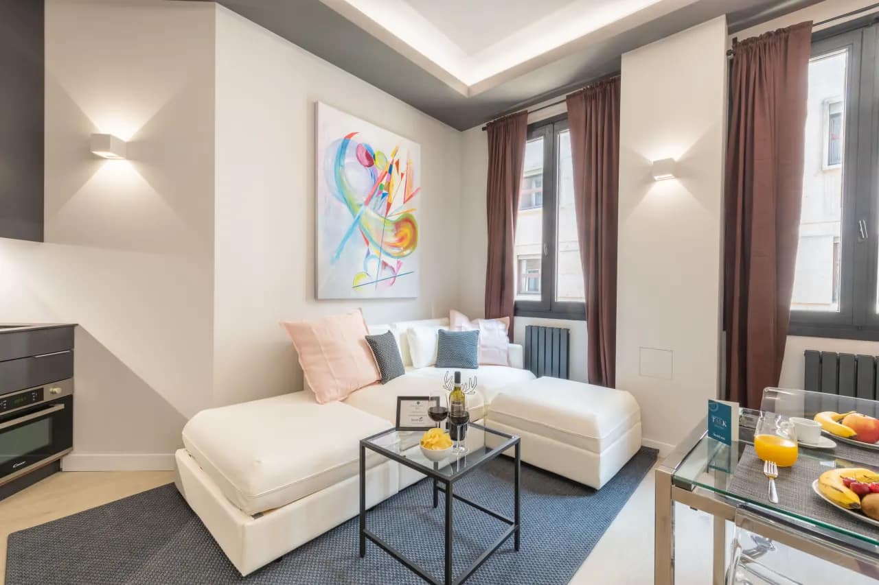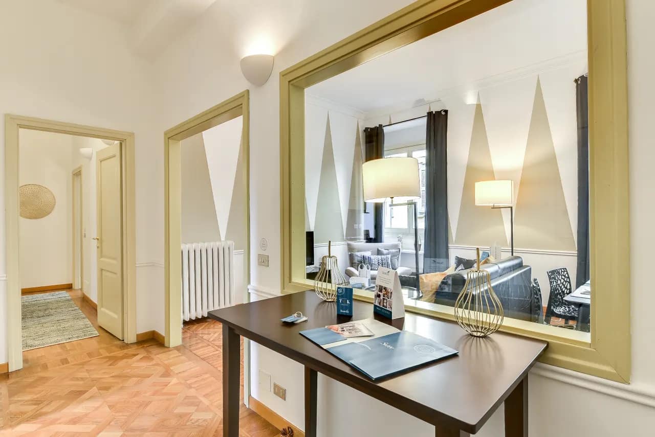 The apartments themselves are designed with comfort, style, and practicality in mind. Each unit offers modern amenities such as air-conditioning, free WiFi, flat-screen TVs, and well-equipped kitchen or kitchenette facilities that allow you to dine in when you want. Bathrooms are clean, well-furnished, often with good fixtures, and the furnishings balance modern minimalism with warm touches of Italian character. The rooms are sound-insulated, helping to buffer the buzz of Centro Storico while still letting you enjoy the energy of living in the centre of Milan. Some units have views over the castle or Parco Sempione—waking up to the silhouette of ancient towers or lush greenery can feel special. Lift access, shared utilities like laundry (where provided), and secure guest access add to the convenience for stays both short and longer.