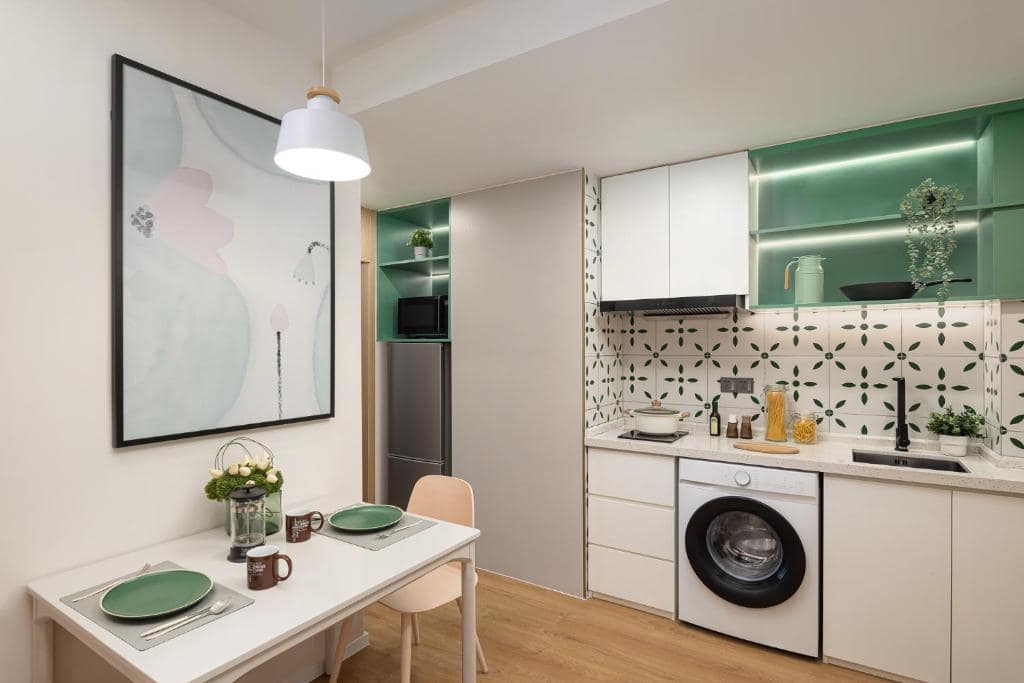 Residents enjoy a rich set of on-site amenities that cater to both lifestyle and work needs. A fitness centre allows guests to maintain wellness routines, while shared office or co-working spaces provide a professional environment without having to leave the residence. A dedicated residents’ lounge offers a comfortable spot for socialising or relaxing, and landscaped outdoor areas around the building bring a touch of calm to everyday life. Practical services such as 24-hour reception and security, regular housekeeping, and self-service laundry make longer stays smooth and convenient. With landscaped surroundings nearby — including parks and greenways — the aparthotel strikes a harmonious balance between urban convenience and nature.