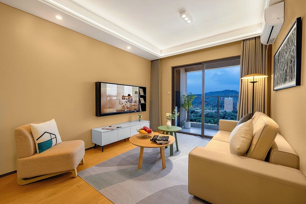 Shenzhen Guanlan Aparthotel features approximately 190 thoughtfully designed serviced studios and suites. Each apartment blends style and function, with parquet flooring, comfortable seating areas, and practical kitchenettes equipped with essential cookware and utensils. Guests can enjoy flexible living with in-unit washing machines, minibars, air conditioning, and soundproof windows to enhance privacy. High-speed Wi-Fi and working desks make the apartments ideal for remote work or professional needs, while mature design details help establish a calm, home-like atmosphere. Its blend of contemporary living, practical amenities, and a calm neighbourhood setting makes it an ideal choice for guests seeking both convenience and comfort during their stay in Shenzhen.