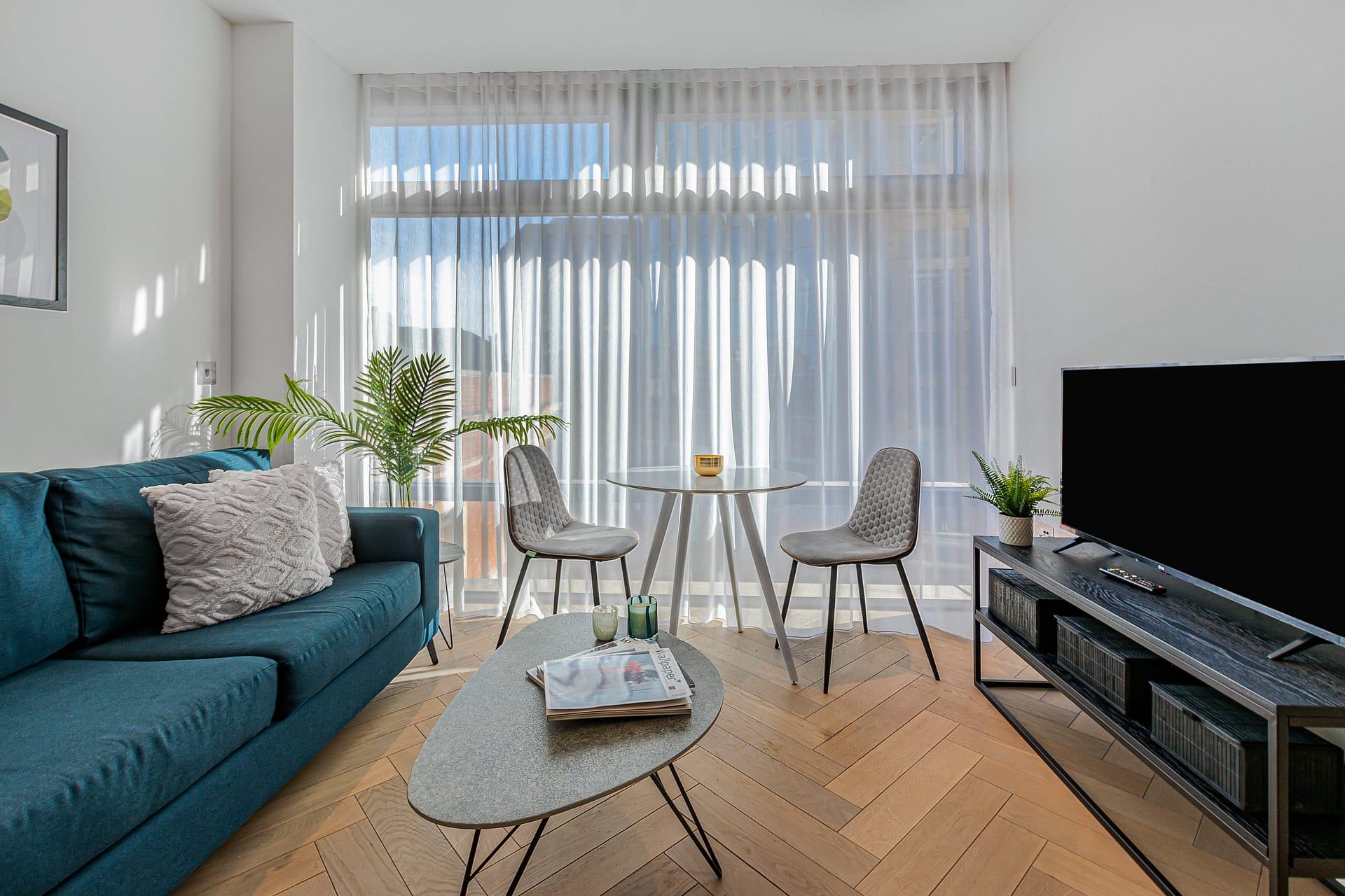 Inside, Shoreditch Principal Place Apartments are thoughtfully designed with a focus on contemporary comfort. Open-plan living spaces feature floor-to-ceiling windows that flood the interiors with natural light, while sleek kitchens are fully equipped for cooking and dining at home. Bedrooms are spacious and elegantly furnished with high-quality linens, and modern bathrooms come with premium fittings. Fast, reliable Wi-Fi and Smart TVs make working remotely or streaming entertainment a breeze. Whether you’re staying for a weekend or several weeks, the apartments offer a private and peaceful retreat amid the energy of the city outside.