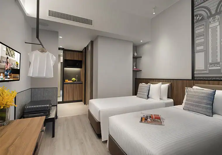 The aparthotel features a range of fully furnished serviced apartments designed to support both short stays and extended residencies, with layouts suitable for solo travellers, couples, and small families. Each apartment is equipped with practical amenities such as high-speed Wi-Fi, air conditioning, fully fitted kitchens, and in-room laundry facilities, giving guests the independence and comfort of home-like living. Thoughtfully designed interiors and functional layouts create welcoming spaces for relaxation, remote work, and everyday routines, while generous living and dining areas make it easy to unwind after exploring Singaporeβs vibrant streets. Contemporary dΓ©cor and clever space planning help ensure a pleasant stay for both leisure and business travellers.