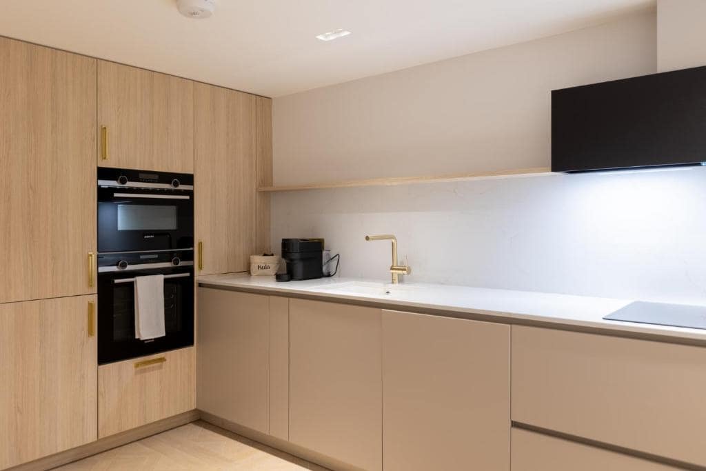 Inside, each apartment is furnished with comfort and functionality in mind. Spacious living areas, sleek modern kitchens, and contemporary bathrooms provide a home-from-home feel, while high-speed internet and flat-screen TVs offer connectivity and entertainment. The interiors favour a clean and minimal aesthetic with soft tones, natural light, and thoughtful layout—perfect for unwinding after a busy day. Whether you’re preparing your own meals, catching up on work, or simply relaxing, the apartments offer the kind of flexibility that hotels often can’t. Guests travelling on longer stays will also appreciate laundry facilities and generous storage throughout.