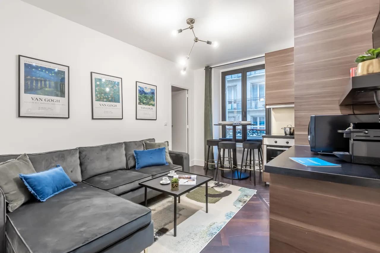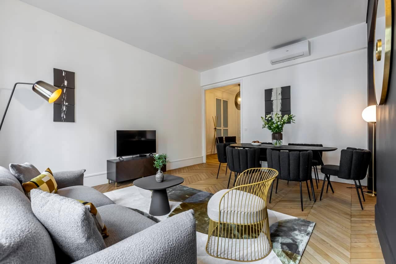 The Square Albert Besnard Apartments welcome you to experience Paris with all the charm of authentic Parisian living. Whether you are here for business, a romantic escape, or a family trip, these stylish apartments combine modern comfort with French glamour. Thoughtfully decorated by our local interior designer, the interiors feature elegant furnishings, soft tones, and clever use of space, creating a warm and inviting atmosphere. Each apartment captures the essence of Paris while ensuring guests feel right at home. Every detail has been thoughtfully curated to ensure your stay is as comfortable and memorable as possible, making this apartment a true home away from home in the heart of Paris.